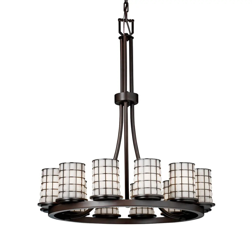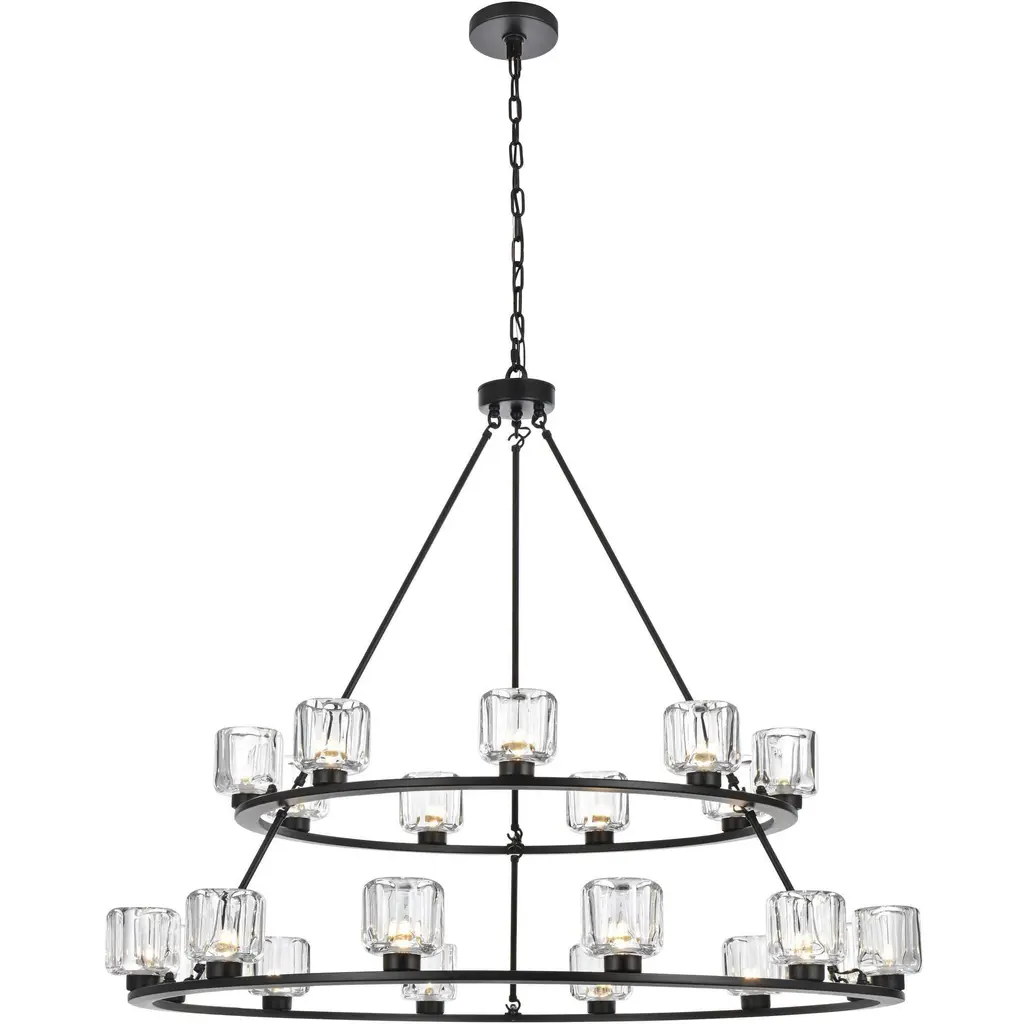Wire Glass™ Collection - Dakota 2-Tier Ring Chandelier - Cylinder w/ Flat Rim Shade - Matte Black - Grid with Clear Bubbles - E26