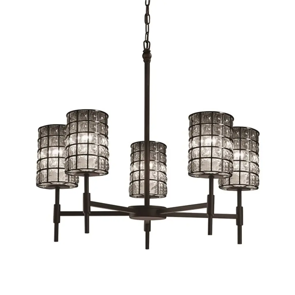 Wire Glass 21 Light 33 Inch Matte Black Chandelier Ceiling Light In Grid With Clear Bubbles, Incandescent, Cylinder