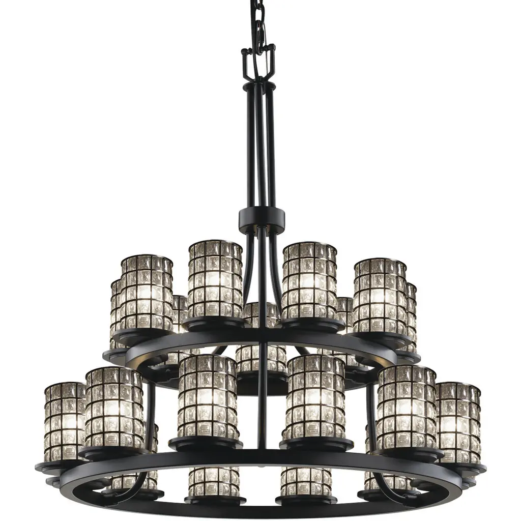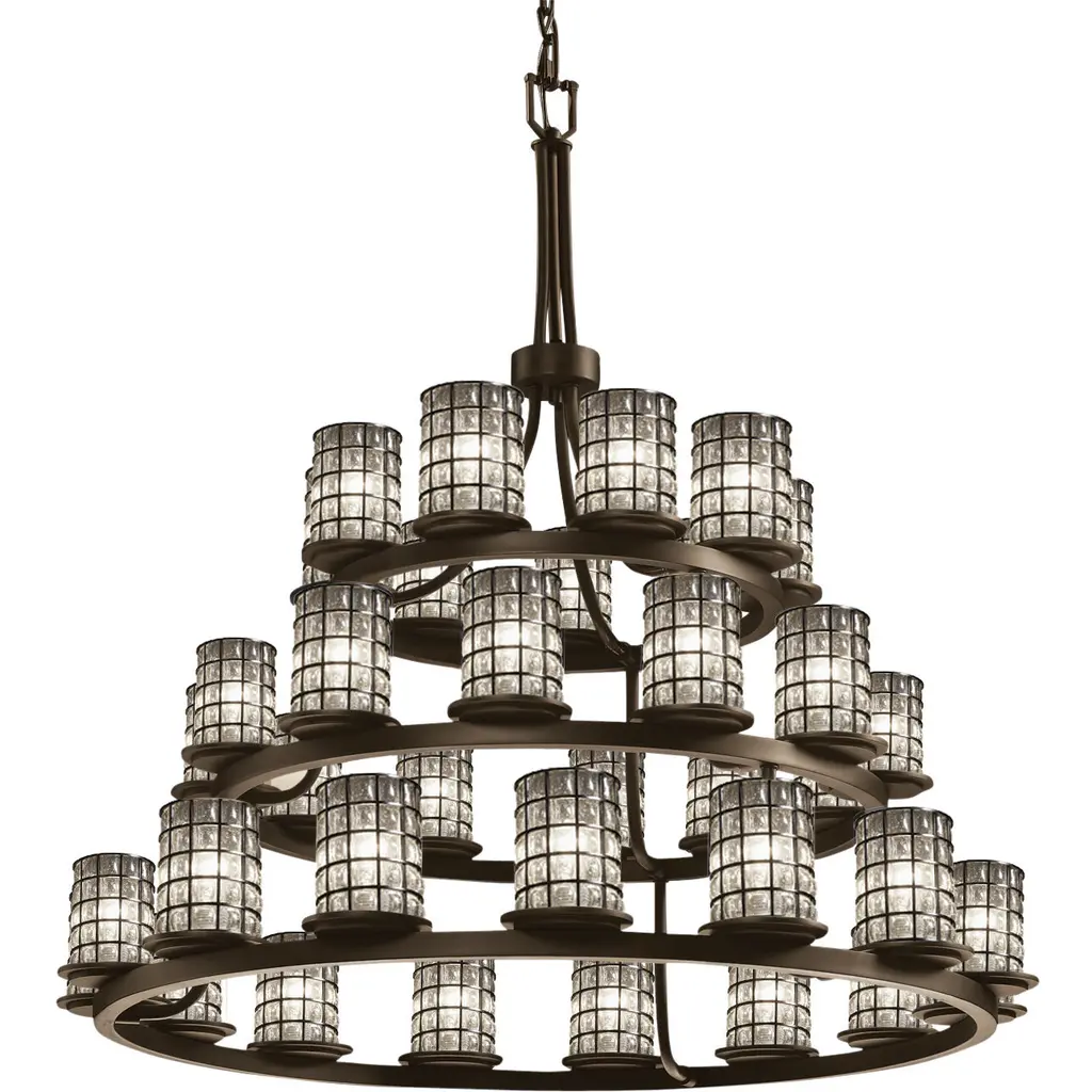 Wire Glass™ Collection - Dakota 36-Light 3-Tier Ring Chandelier - Cylinder w/ Flat Rim Shade - Matte Black - Grid with Clear Bubbles - E26