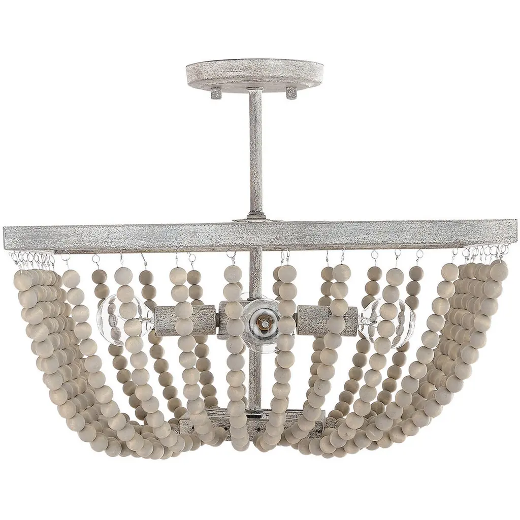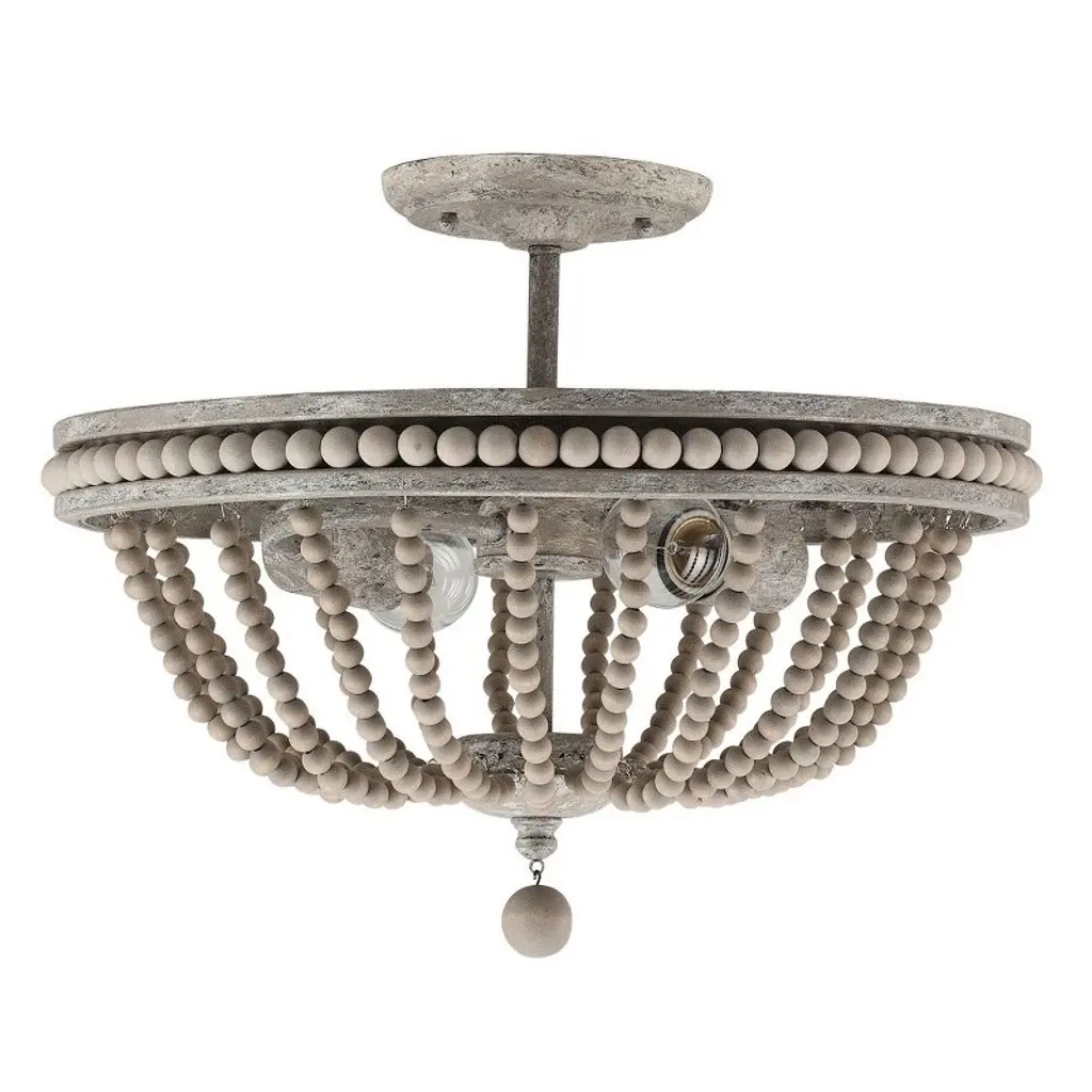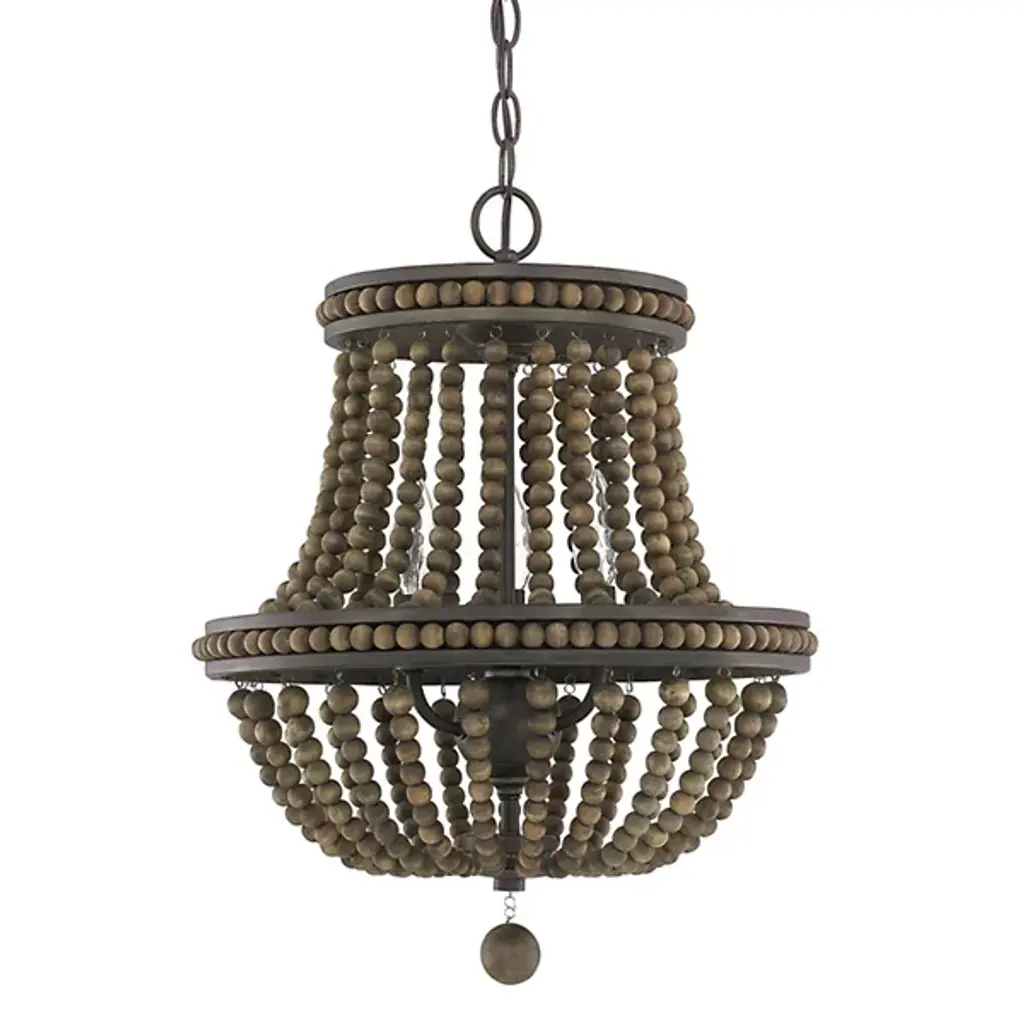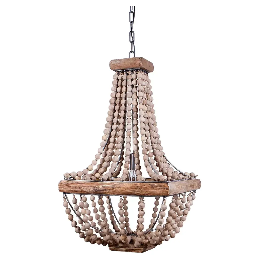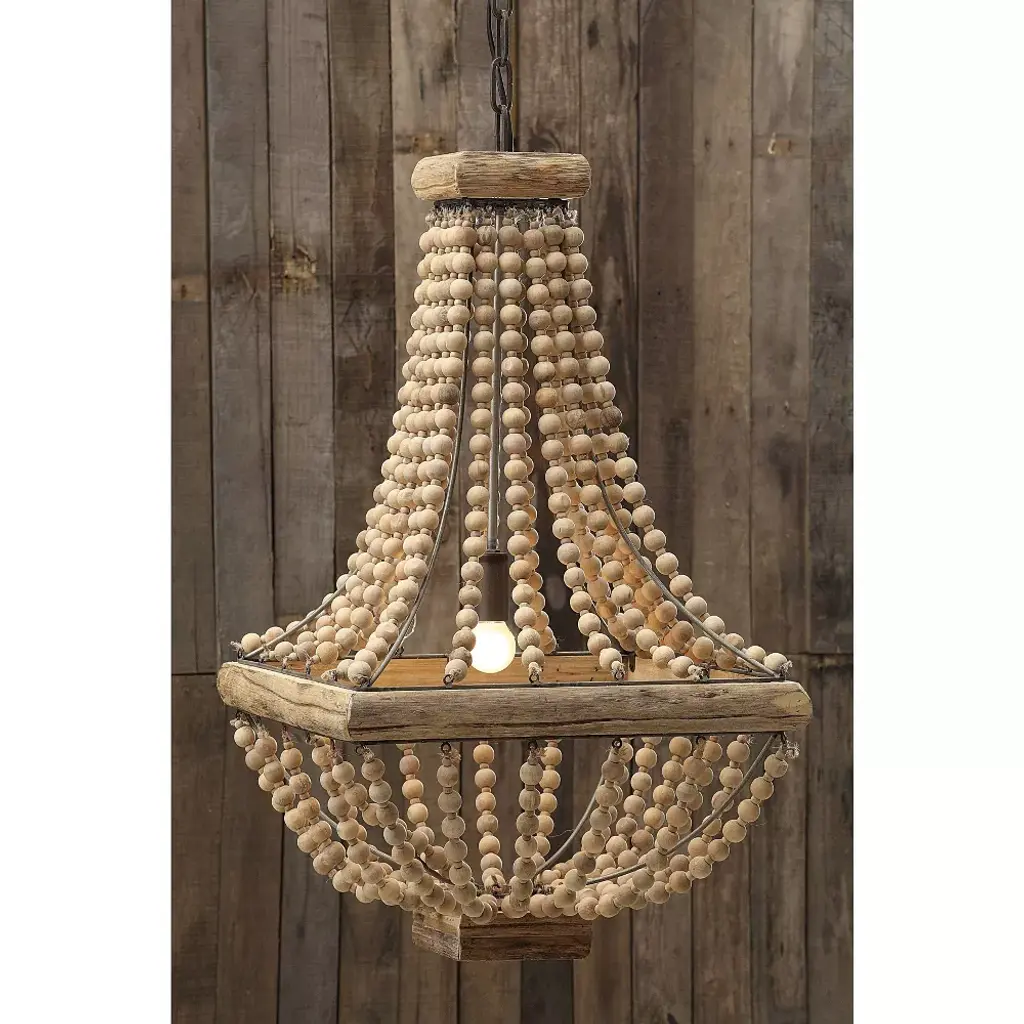 Wood/metal Framed Chandelier With Wood Bead Draping Cream - Storied Home: Neutral Hue, Ul Listed, Adjustable Height