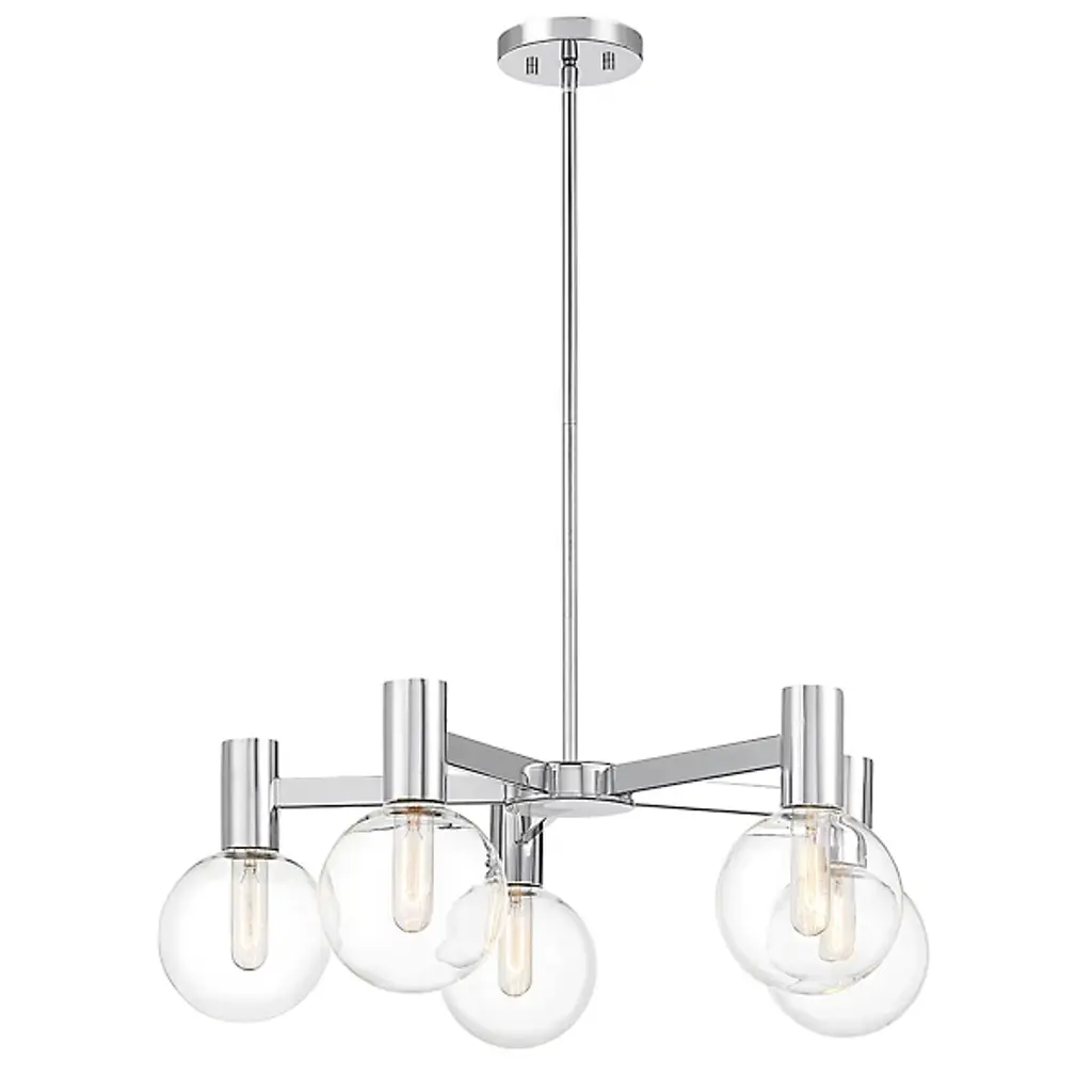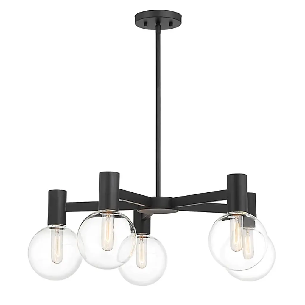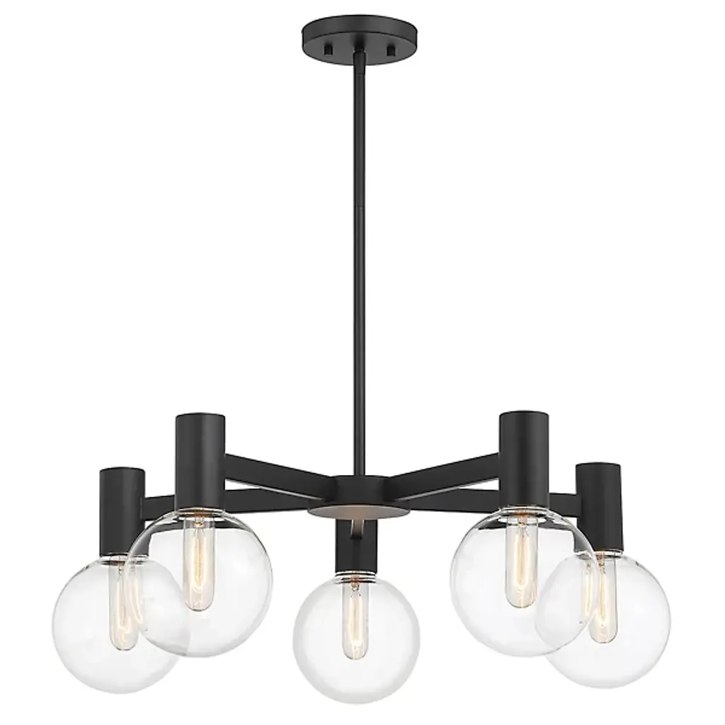 Experience the perfect blend of vintage and contemporary with the Wright Chandelier from Savoy House. This artistic masterpiece seamlessly harmonizes streamlined design, making it a versatile addition to any room. The round clear glass shades enhance its allure and provide an extra layer of protection for the bulbs. The fixture is crafted from a harmonious fusion of metal and glass, embodying timeless elegance while infusing modern aesthetics with smooth sophistication.
