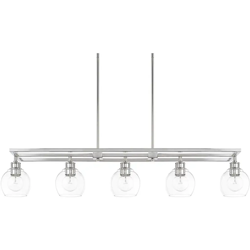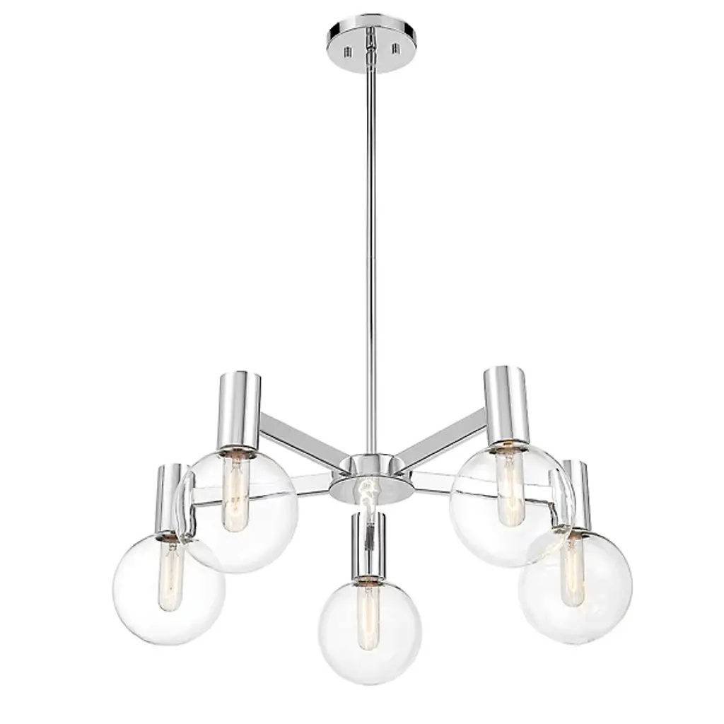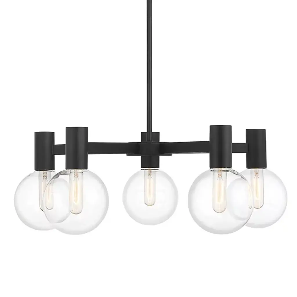 Experience the perfect blend of vintage and contemporary with the Wright Chandelier from Savoy House. This artistic masterpiece seamlessly harmonizes streamlined design, making it a versatile addition to any room. The round clear glass shades enhance its allure and provide an extra layer of protection for the bulbs. The fixture is crafted from a harmonious fusion of metal and glass, embodying timeless elegance while infusing modern aesthetics with smooth sophistication.