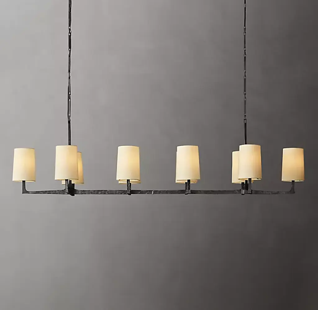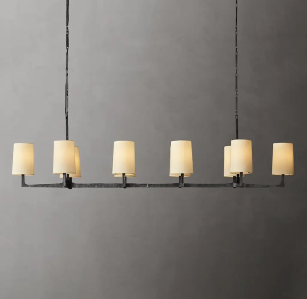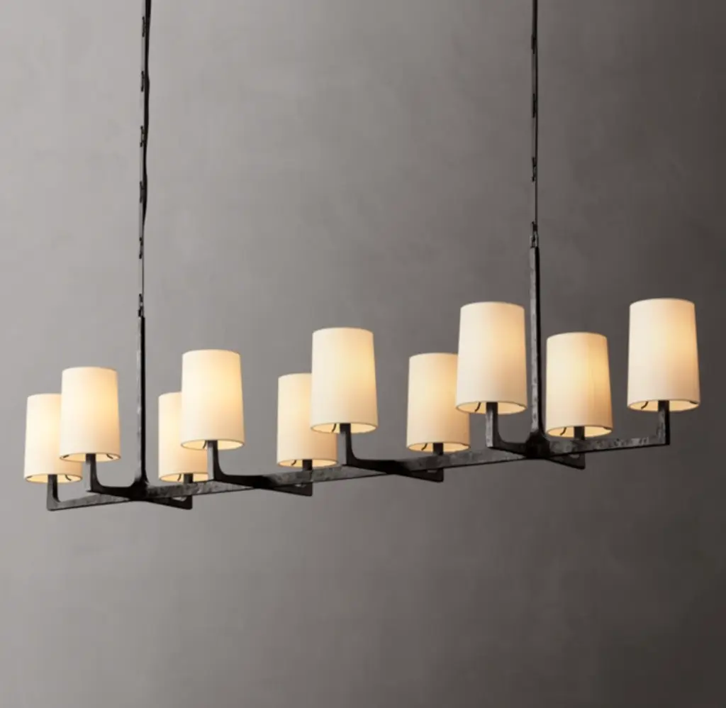 Spare and elegantly minimal, our fixture by Ian K. Fowler defines refined simplicity. A hand-forged, hammered metal frame – its arms perfectly tapered – showcases tailored white linen shades. An exercise in balance and proportion, it conjoins light and dark, crisp right angles and understated curves. SHOP THE ENTIRE COLLECTION