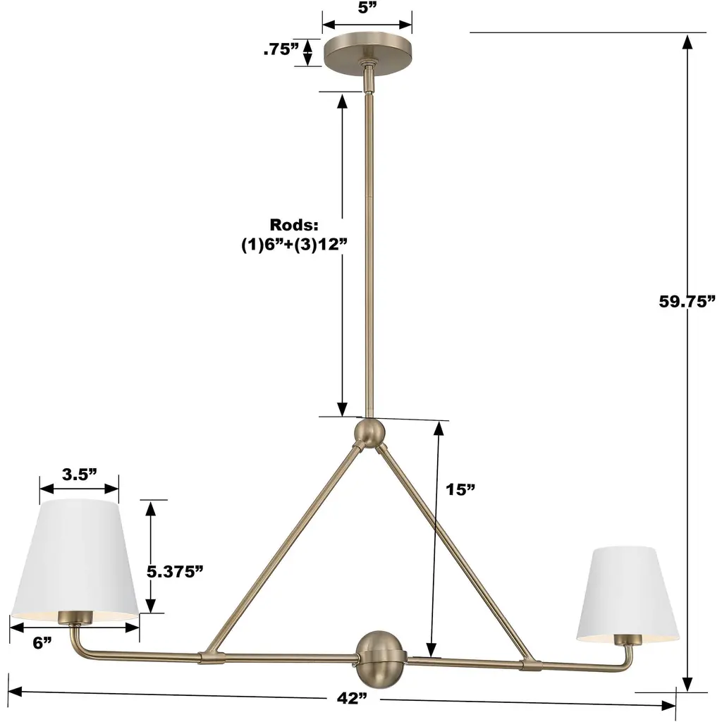 Xavier 2 Light 42 Inch Vibrant Gold And White Chandelier Ceiling Light