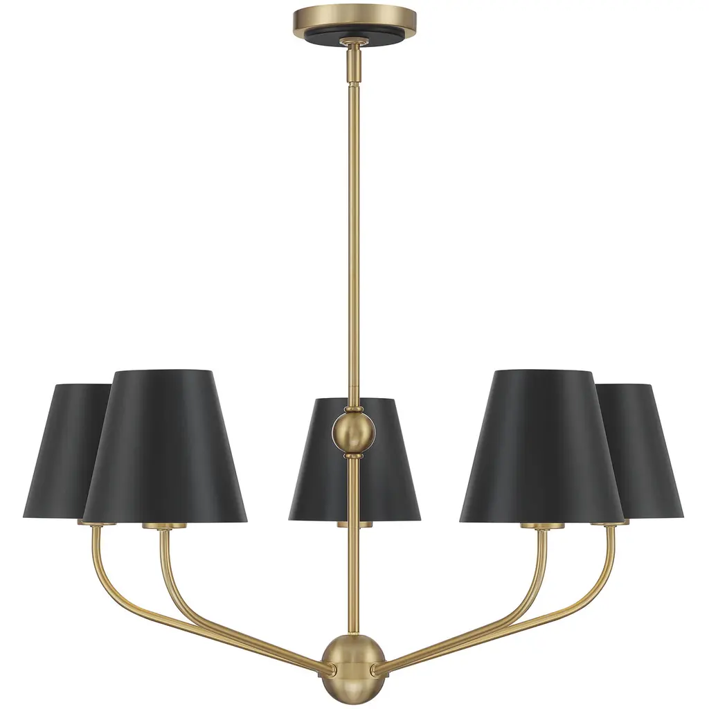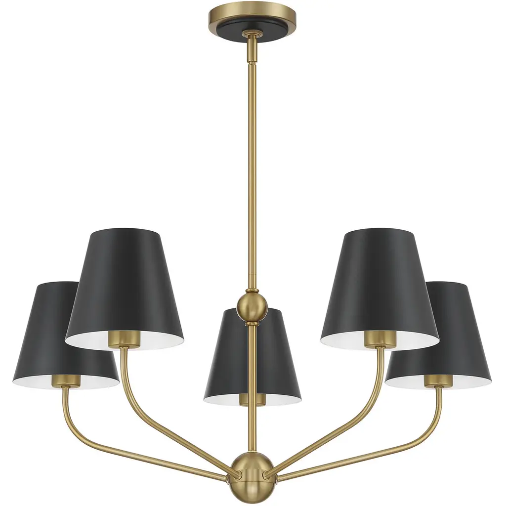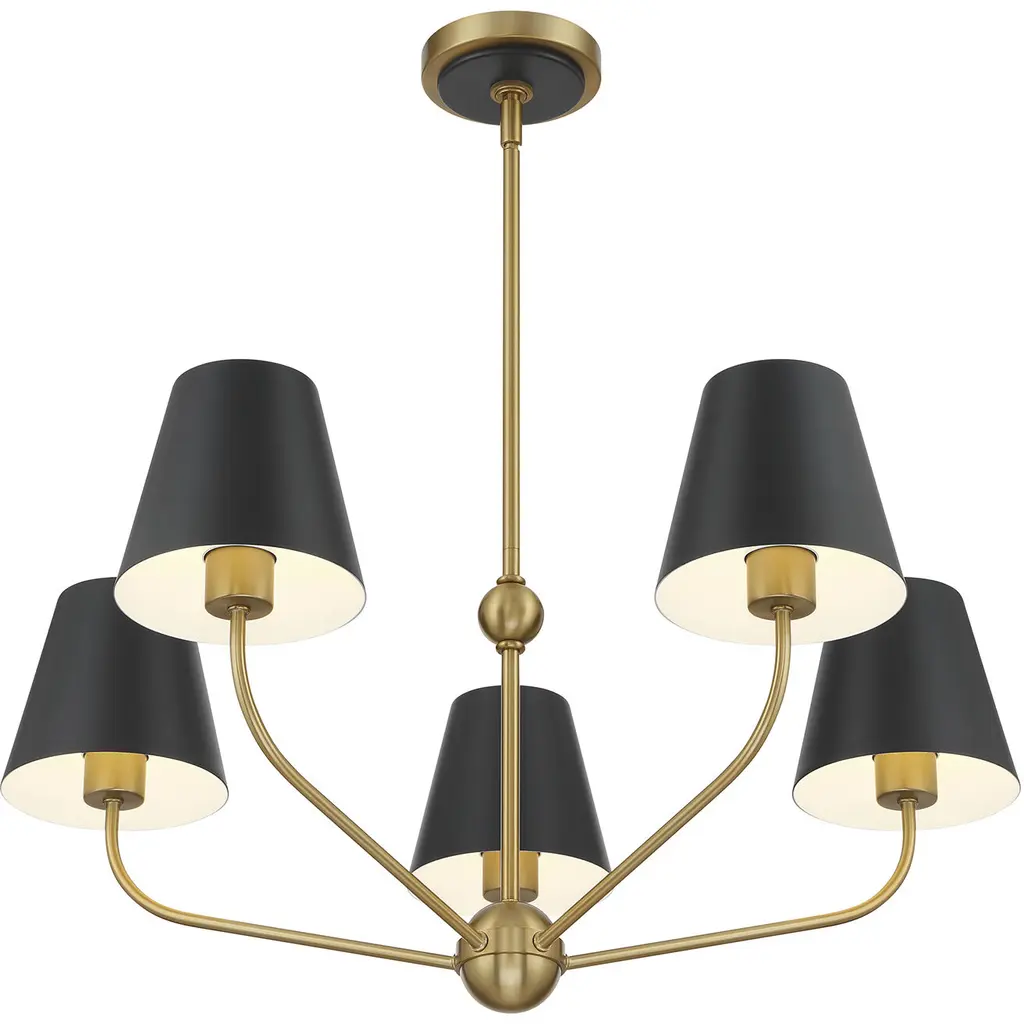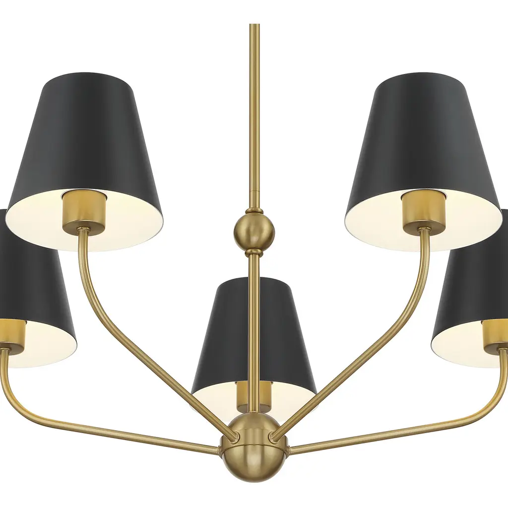 Xavier 5 Light 28 Inch Vibrant Gold And Matte Black Chandelier Ceiling Light
