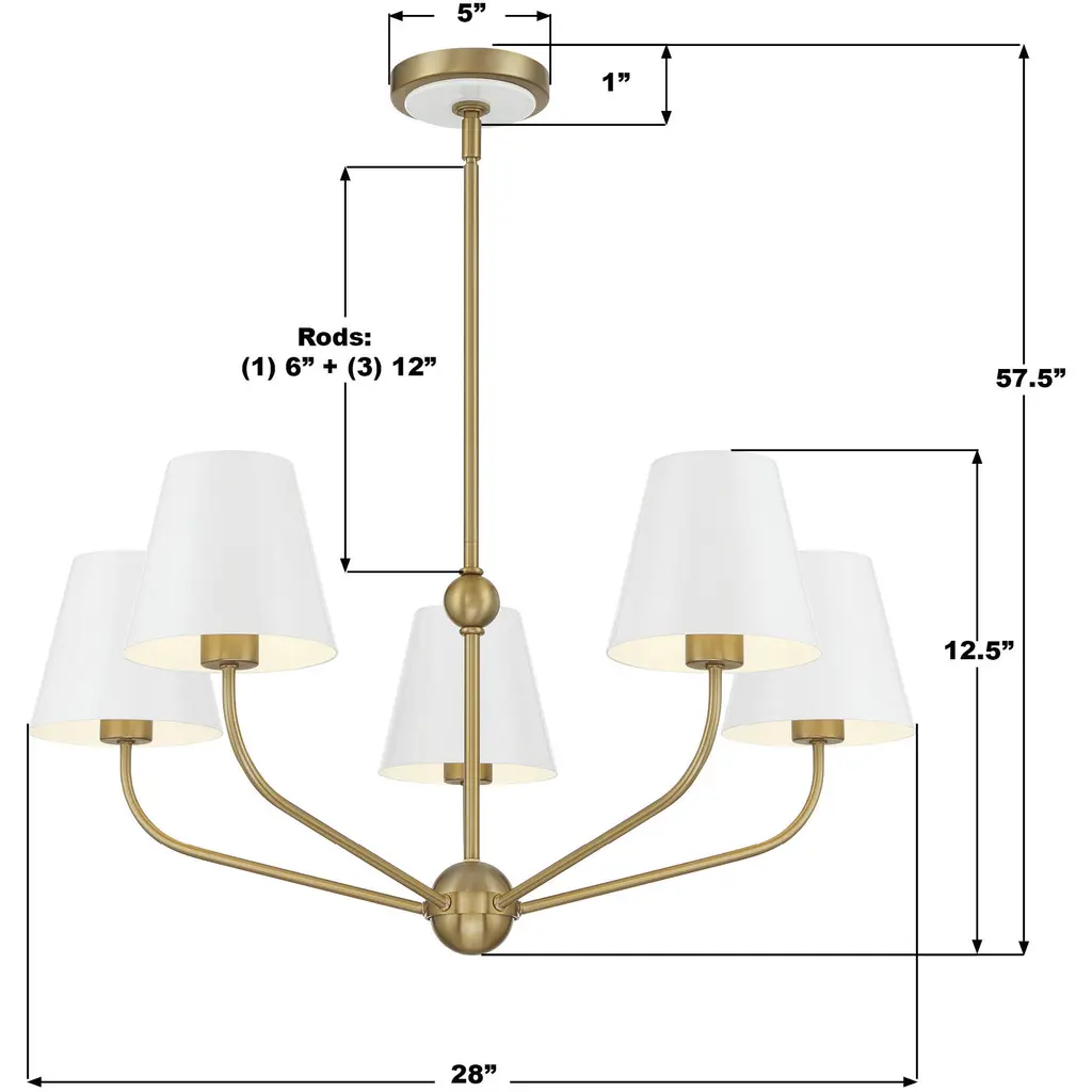 Xavier 5 Light 28 Inch Vibrant Gold And White Chandelier Ceiling Light