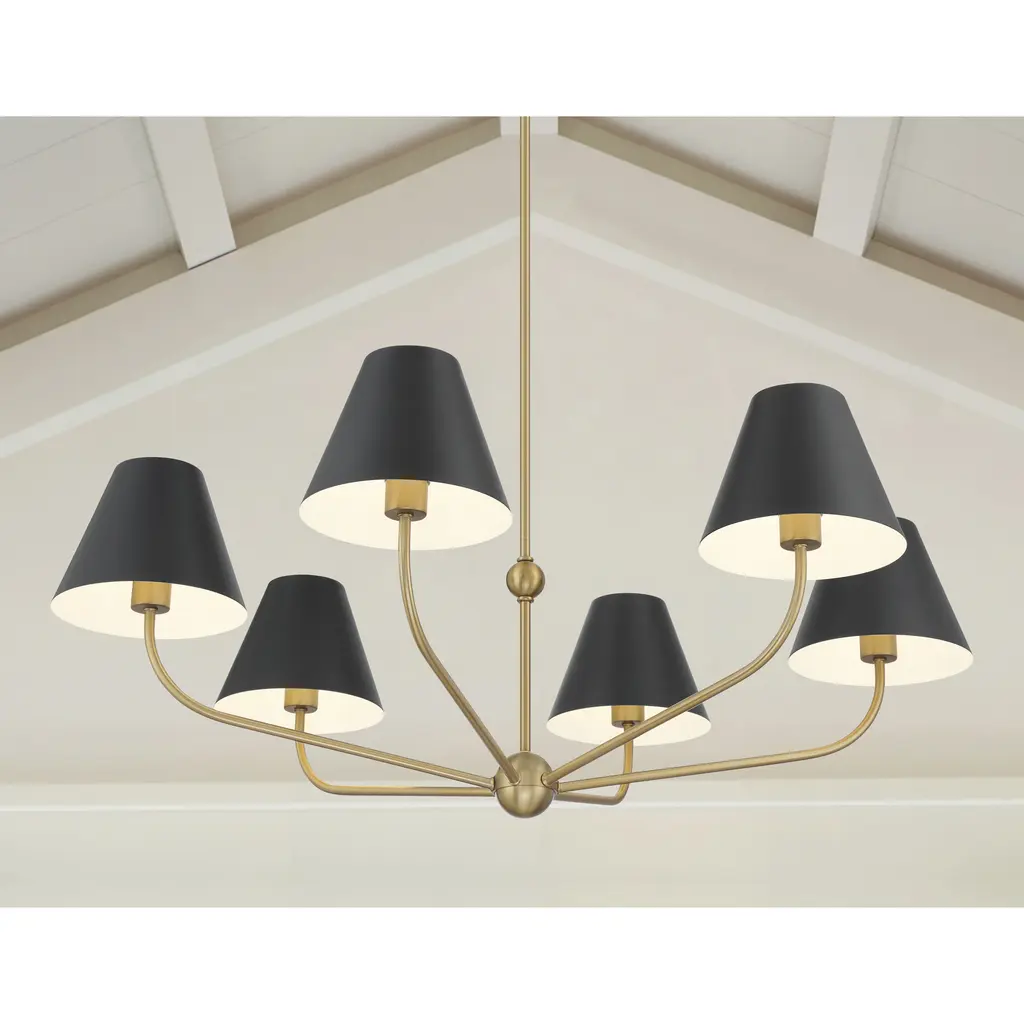 Xavier 6 Light 40 Inch Vibrant Gold And Matte Black Chandelier Ceiling Light