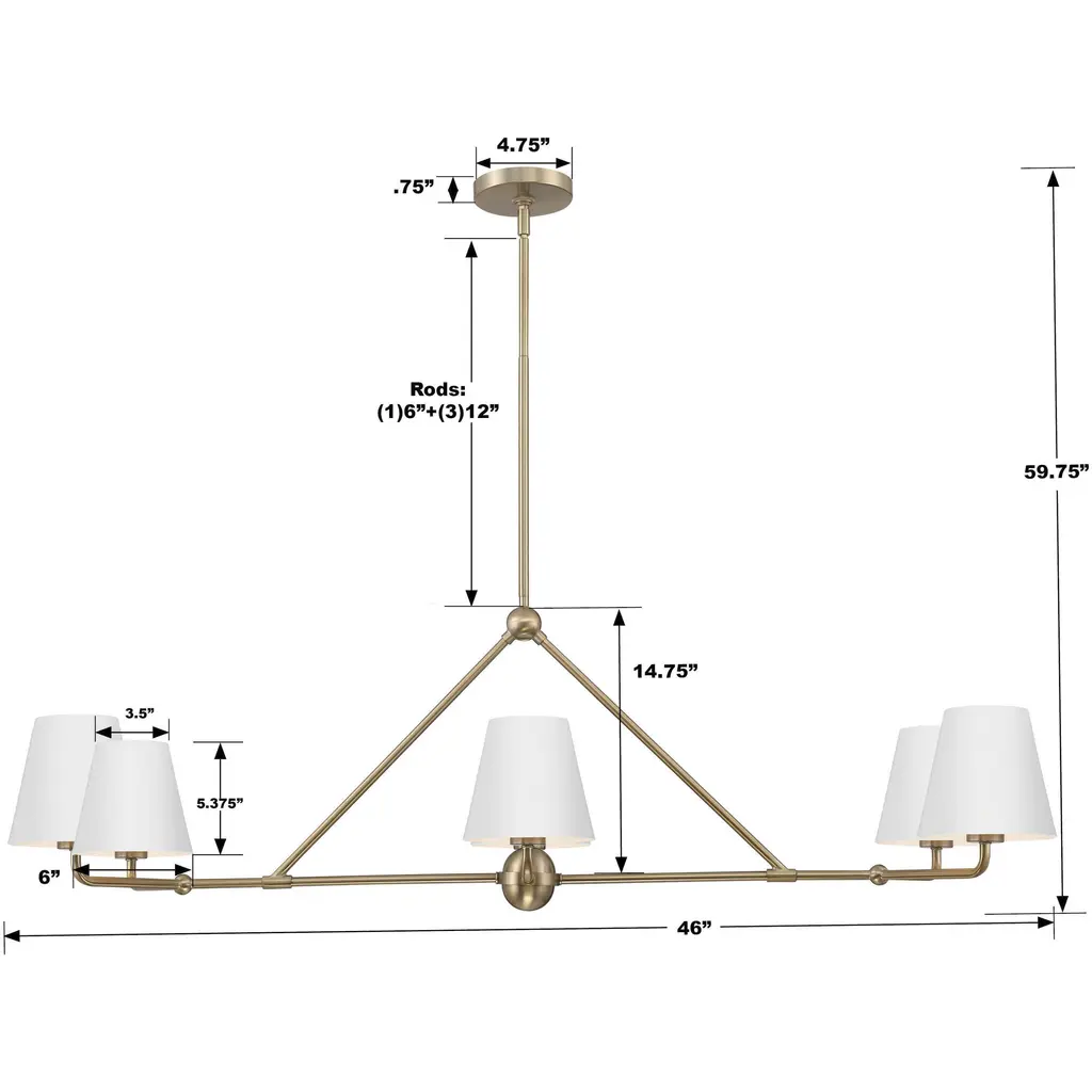Xavier 6 Light 46 Inch Vibrant Gold And White Chandelier Ceiling Light