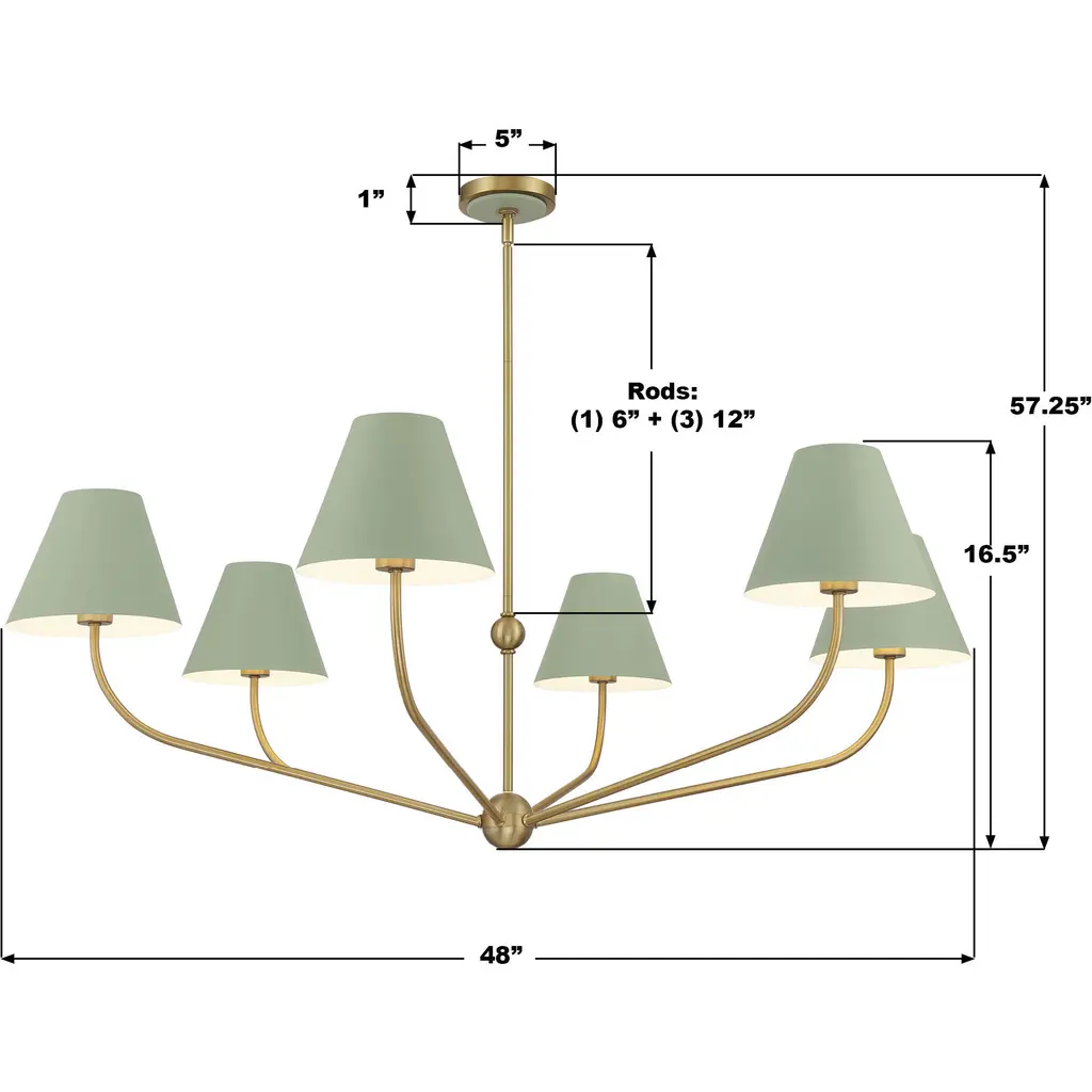 Xavier 6 Light 48 Inch Vibrant Gold And Green Chandelier Ceiling Light