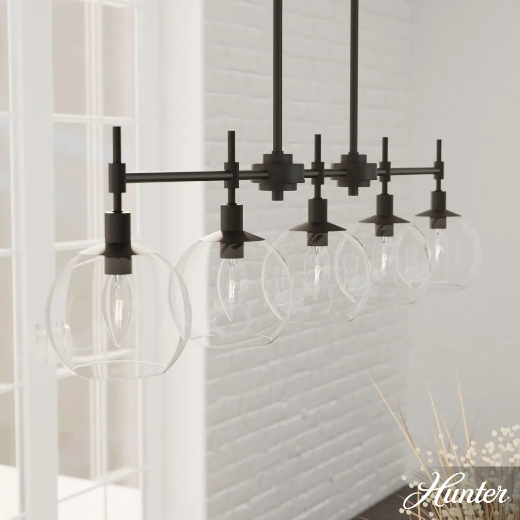 The graceful symmetry of the Xidane linear chandelier balances elegance with an edgy undertone. Glass orbs hang from metal, shining ambient light down as you entertain guests at your kitchen island or dining table. Make an impression by adding lights from the Xidane collection throughout your home to elevate all your spaces with the glow of glamour. Mix and match with fans from our ceiling fan collections to fully finish your space.