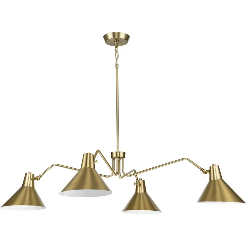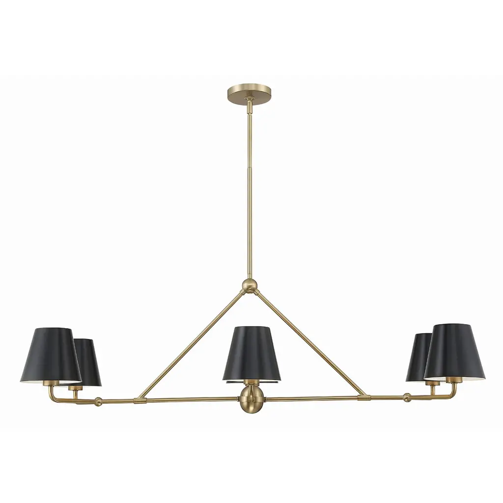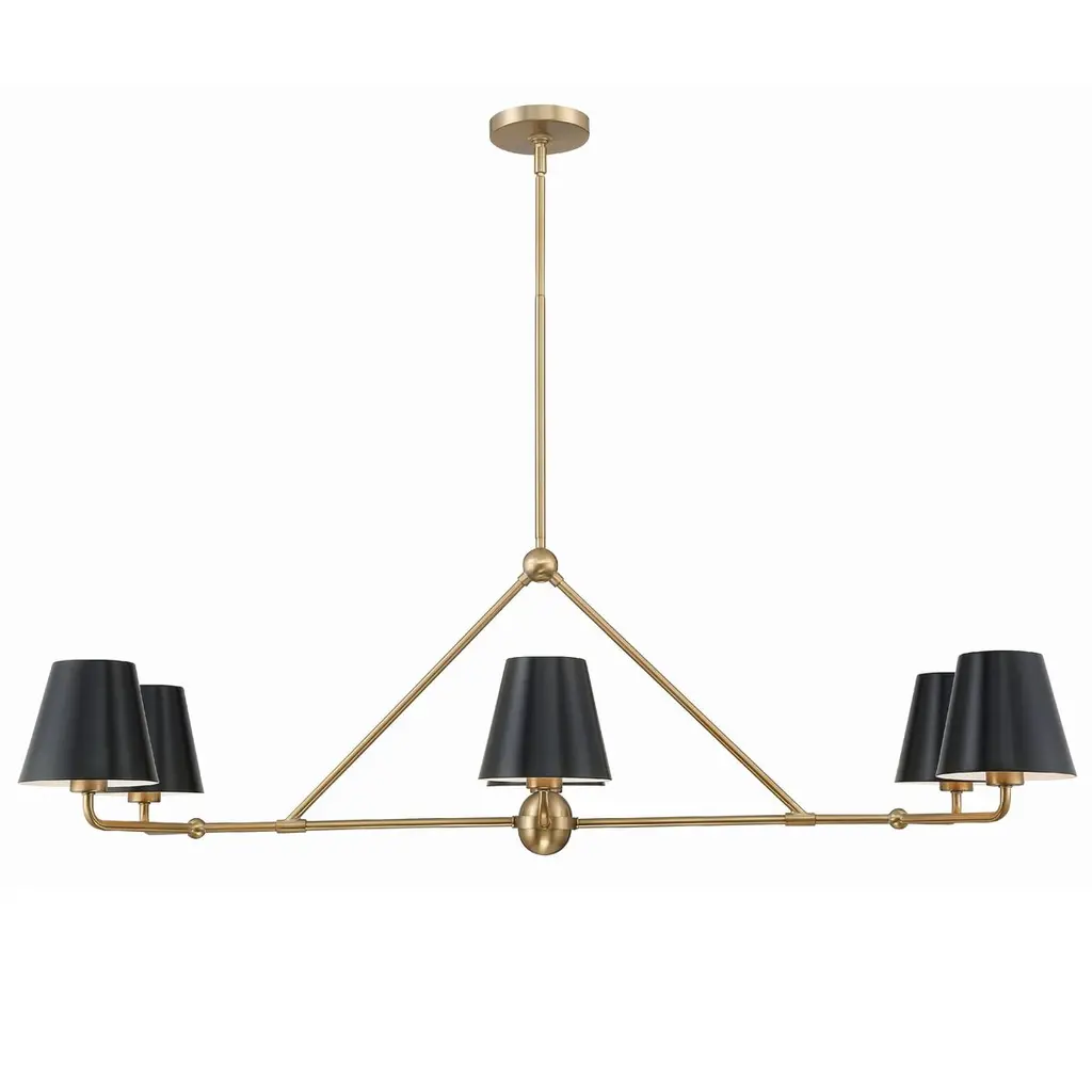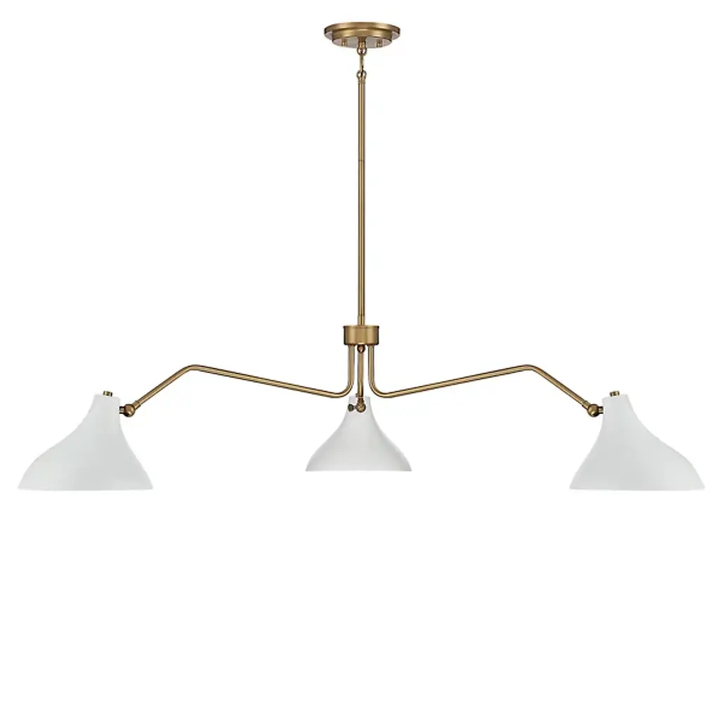 The Yale Chandelier from Alder & Ore embodies an intricate transitional style with its stepped canopy and short chain supporting a single downrod. Three arms extend from the lower hub, adorned with retro, scoop-style shades that encase the lamping. The robust metal chandelier blends Mid-Century Modern and contemporary styles, making it a memorable addition to any modern interior space. Its detailed design and flaring silhouette add a touch of sophistication to any room.