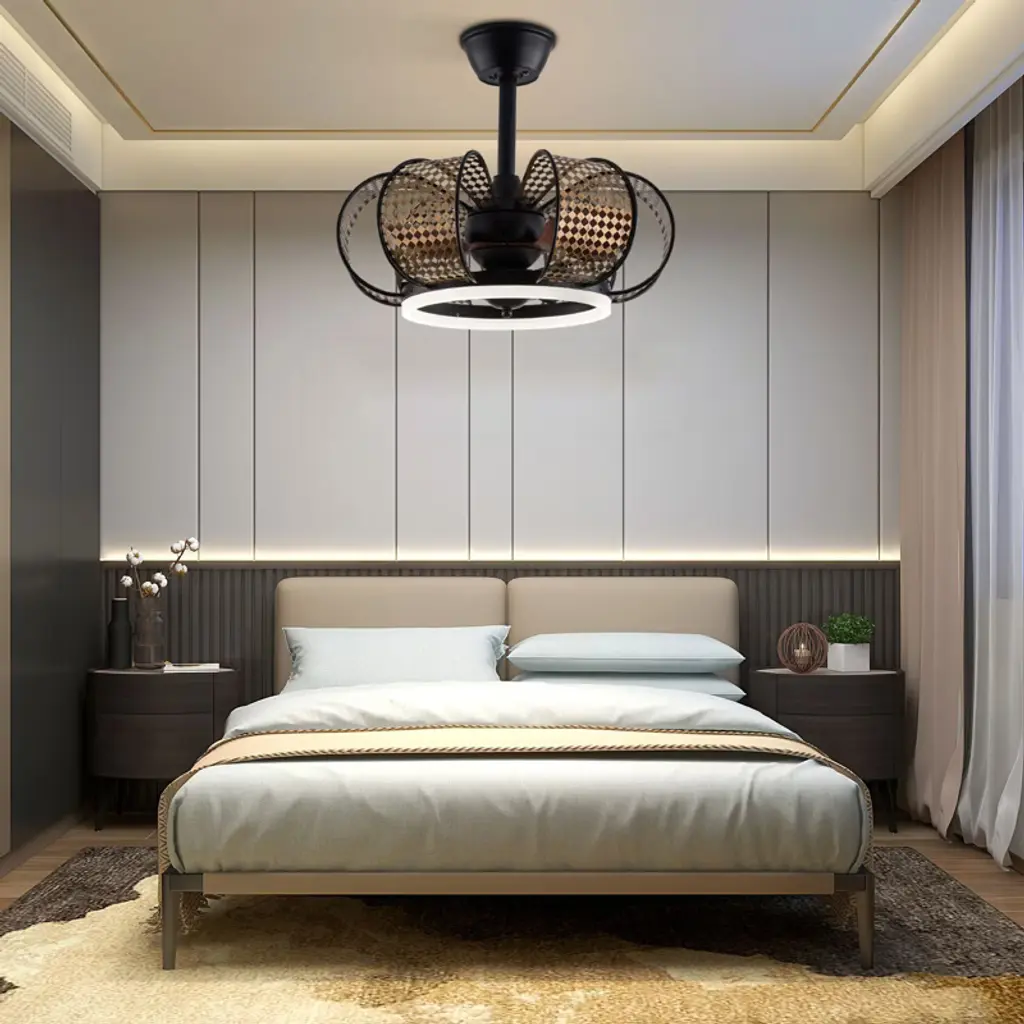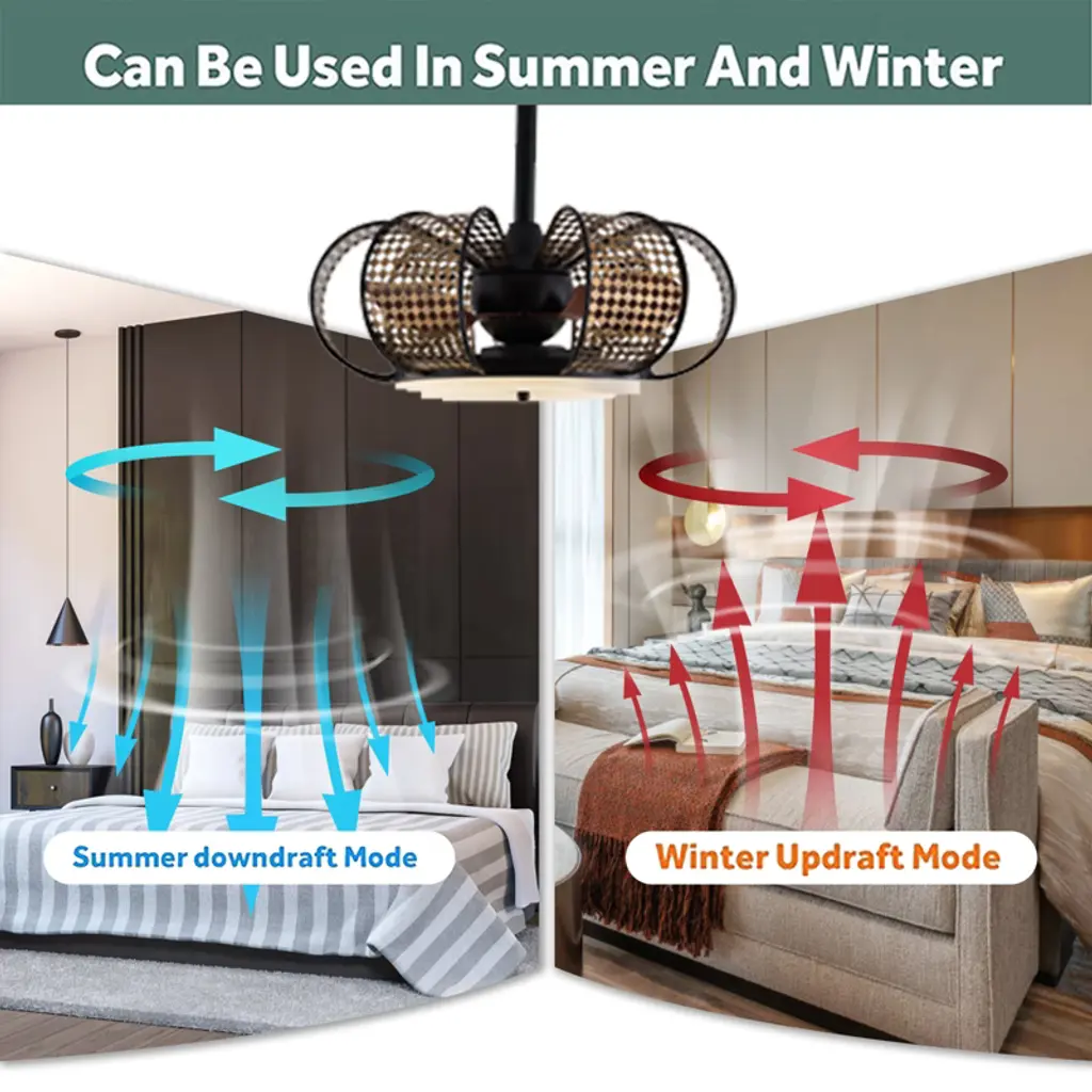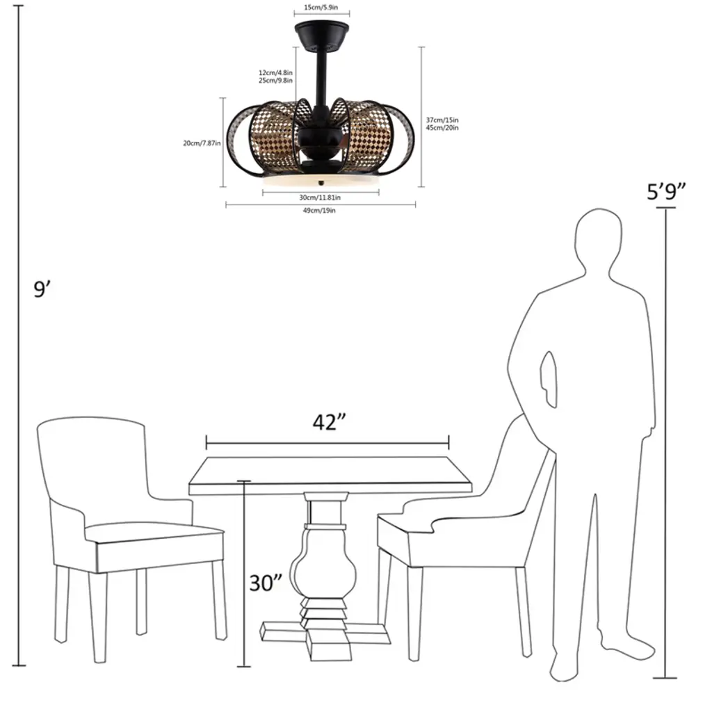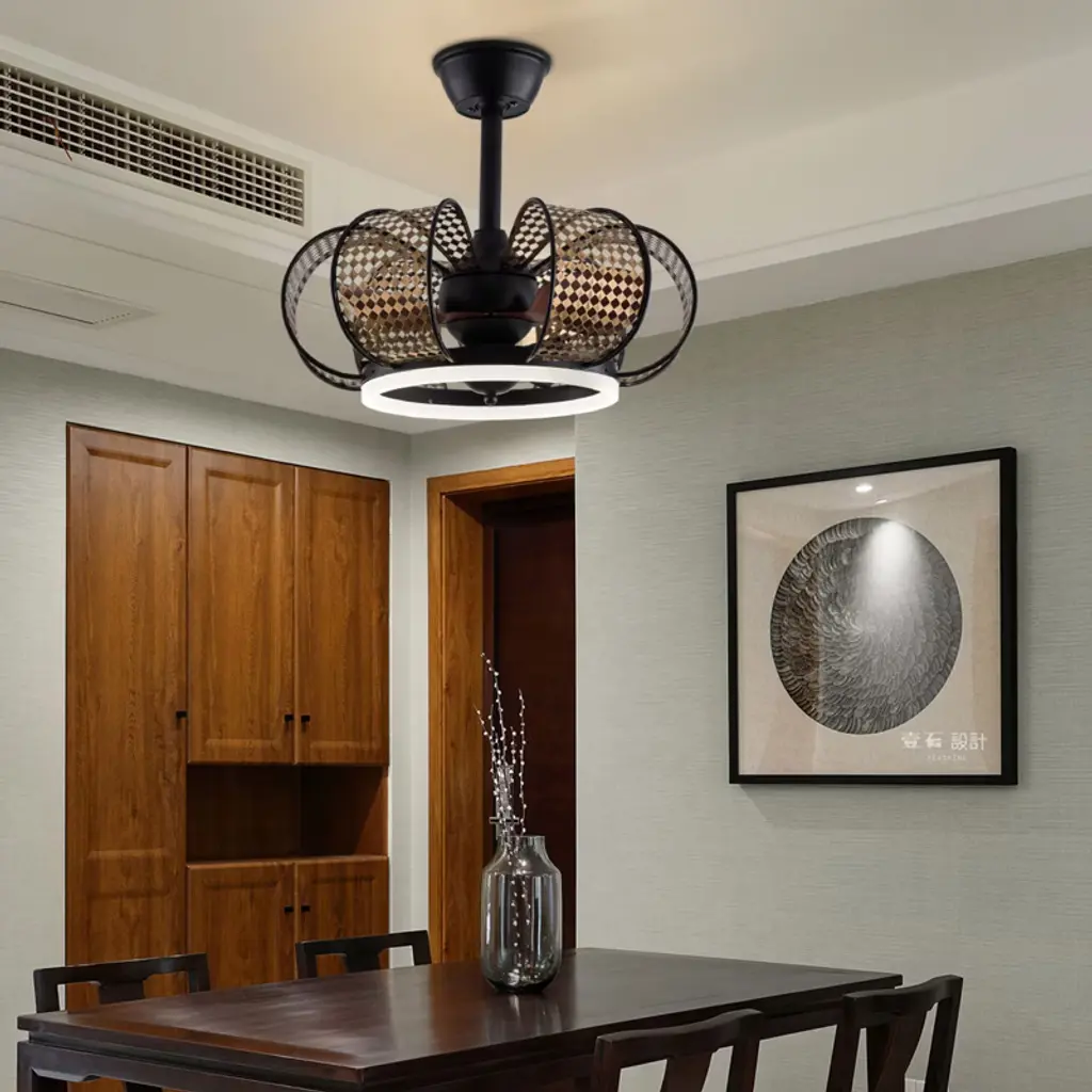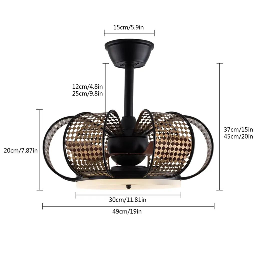 Yiyibyus 19'' Farmhouse Ceiling Fan With Light Remote Control, Chandelier Ceiling Fan With Lights, Black Cage Ceiling Light Fixture