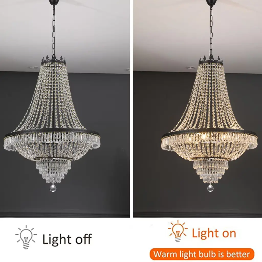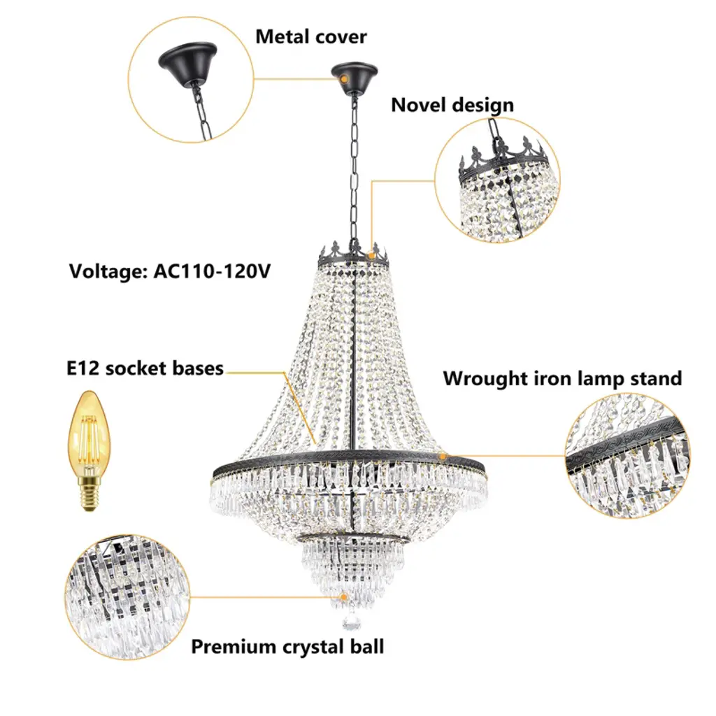 Yiyibyus Luxury 9-light Raindrop Empire Style Adjustable Chain Chandelier, Black