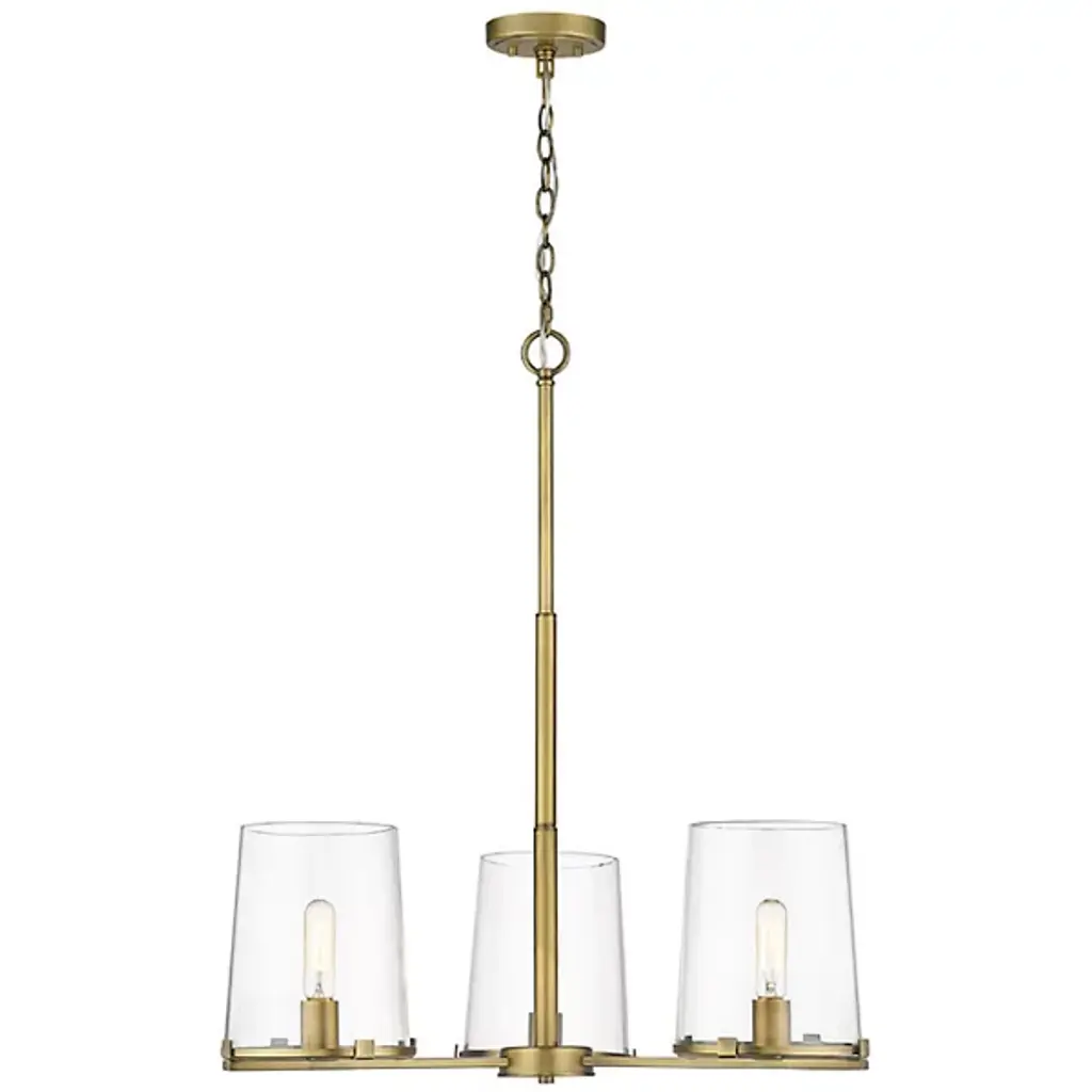 The Young Chandelier from Alder & Ore is a brilliant embodiment of transitional design. The chandelier is neatly suspended from a sturdy downrod connected to a chain of links, all anchored by a durable ceiling canopy. Steel arms extend from the central fixture, each one artfully holding a clear glass shade. Inside, energy-efficient LEDs cast brilliant light that lights up your environment. With a separately sold ELV dimmer, you can adjust the brightness level.