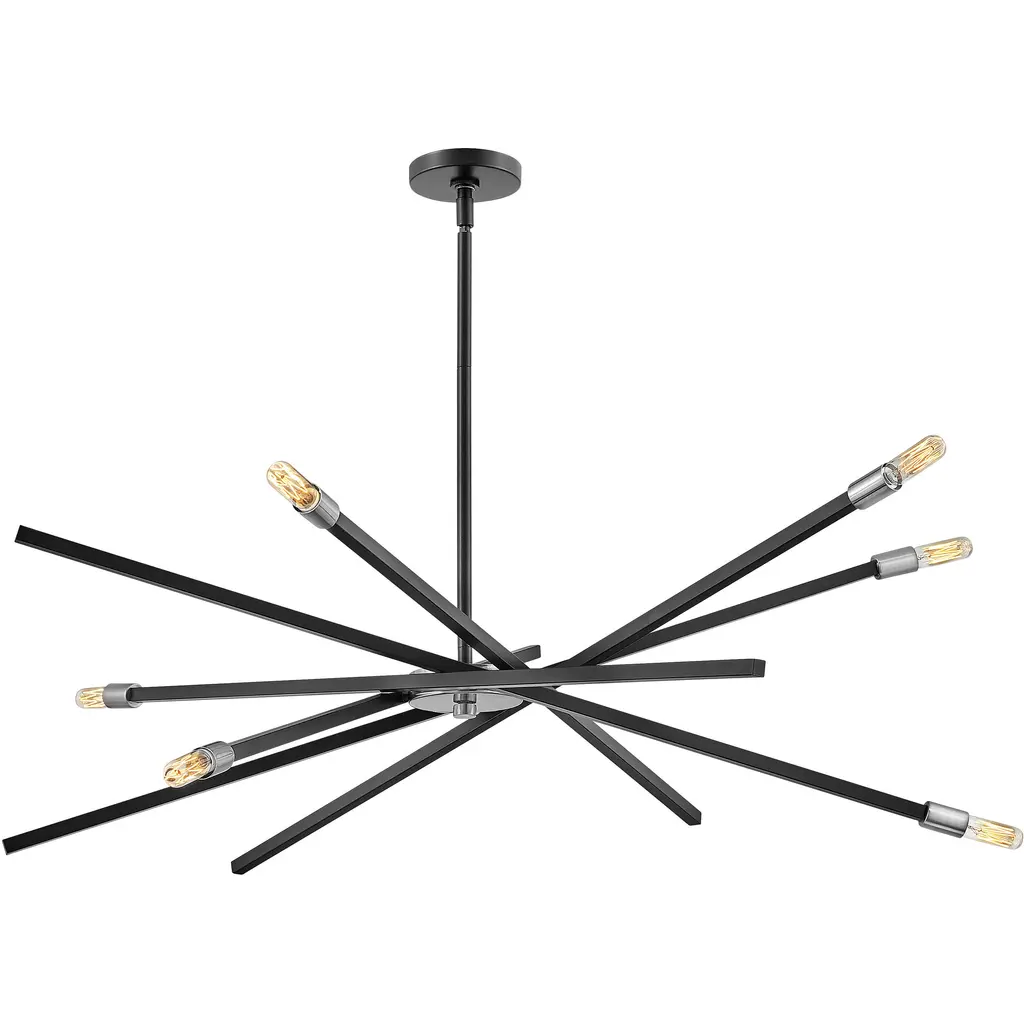 Bring the visual impact of a space-inspired fixture to any contemporary space, adding this dynamic ten-light chandelier to a modern dining room or living area. The sleek look of brilliant chrome finish steel shapes a linear frame and canopy with slender adjustable arms angled to create an abstract silhouette. This light from the Ascension collection captures attention when mounted on a straight or sloped ceiling. Cord Length: 110.00 Rod Length(s): 1-3, 1-6, 6-12 Dimmable: Yes