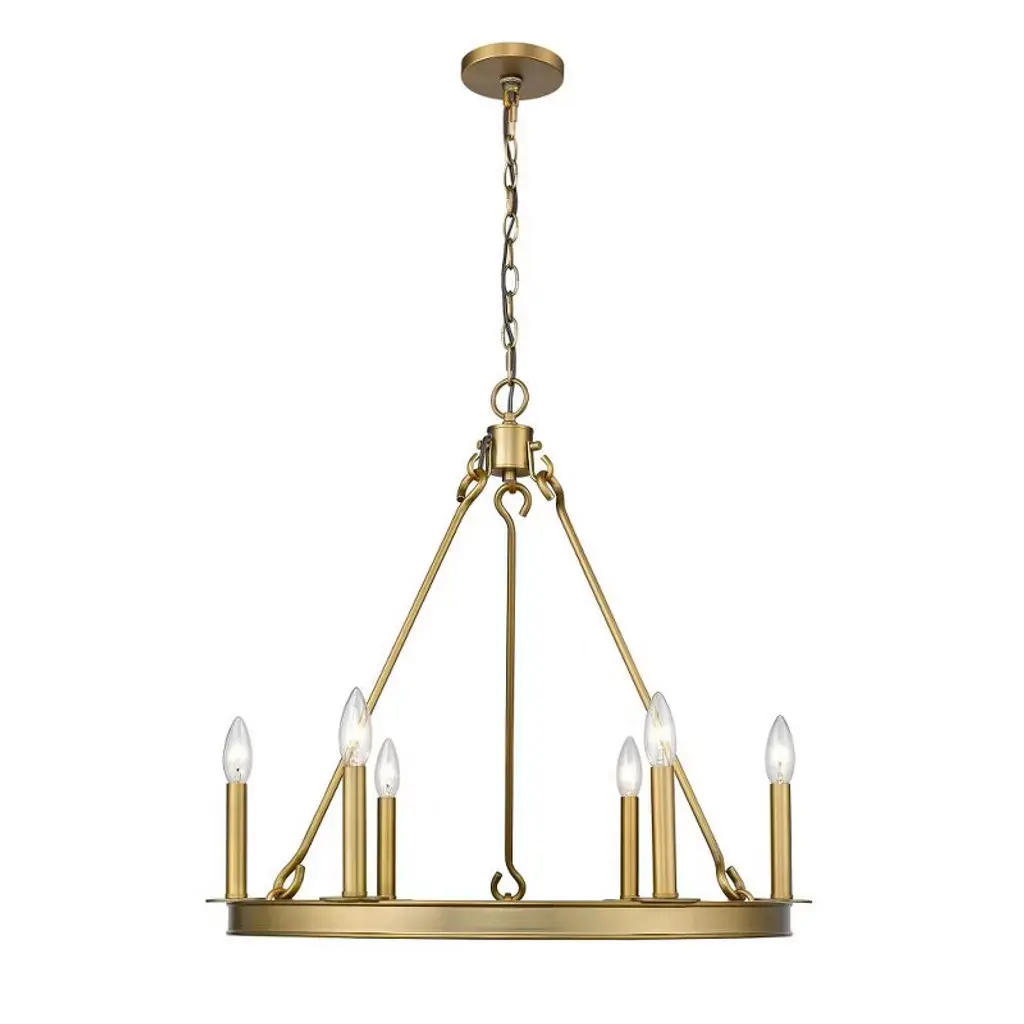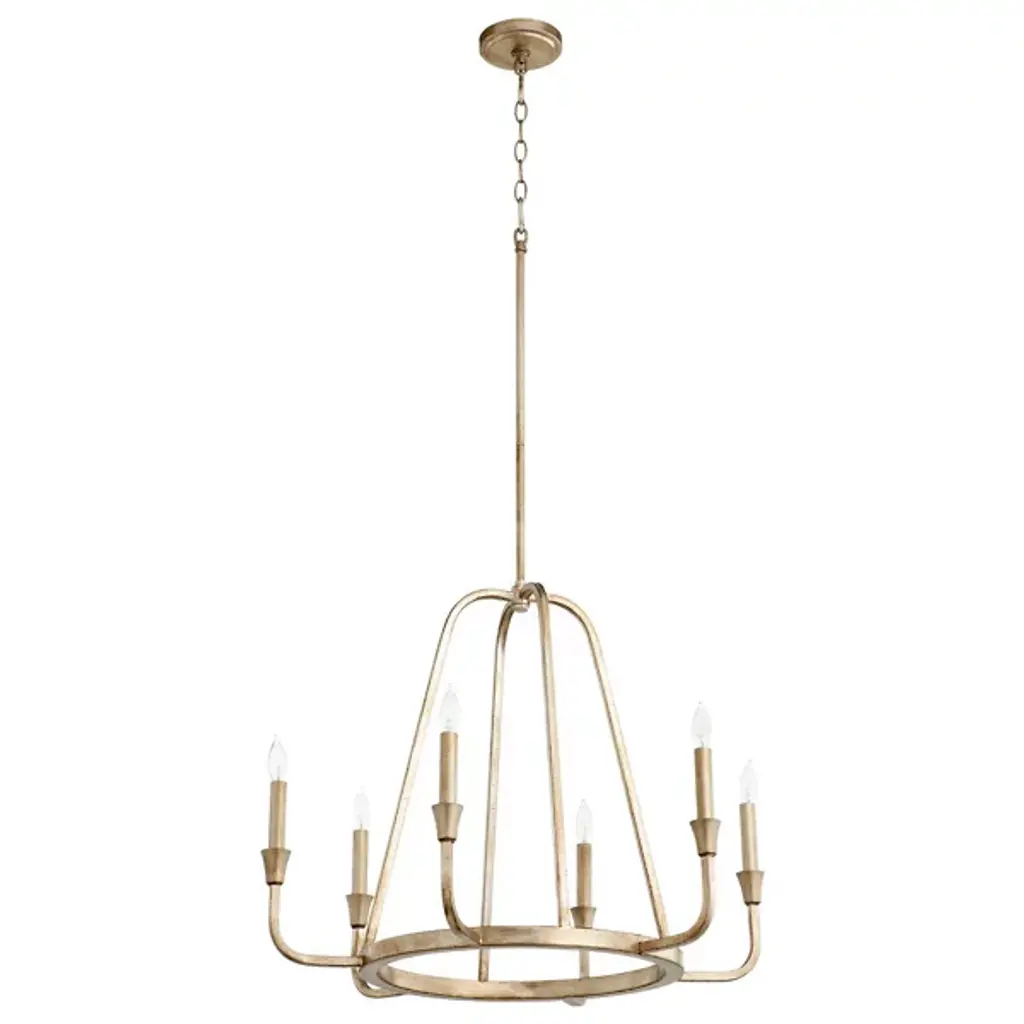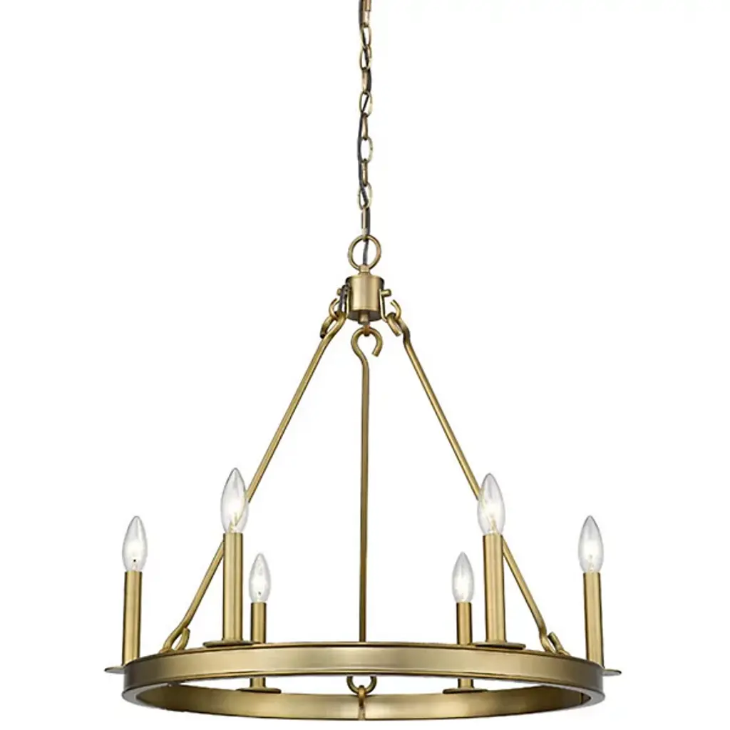 You'll love the alluring style of this six-light chandelier for your home. It's crafted in a lustrous olde brass finish and features the candle-inspired lights in a charming round design. It's perfectly suited for the breakfast nook, foyer, kitchen, or entertainment room. Dining Room/Foyer/Great Room/Hallway/Kitchen Cord Length: 110.00 Dimmable: Yes