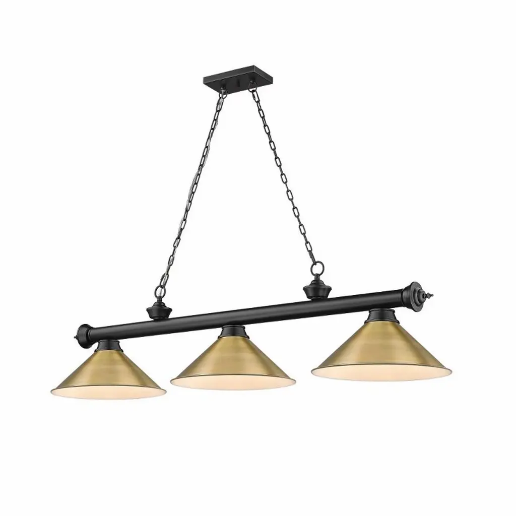 The elegant sheen of the finish and the delicate beauty of its glass shades make this three-light steel billiard light a glamorous addition to any modern home. Suspend this fashionable fixture over a kitchen island, dining table, or pool table to add a balanced aesthetic to interior decor. Room Recommendation: Game Room/Dining Room/Kitchen/Kitchenette Cord Length: 110.00 Chain Length: 72.00 Dimmable: Yes Shade Included: Yes