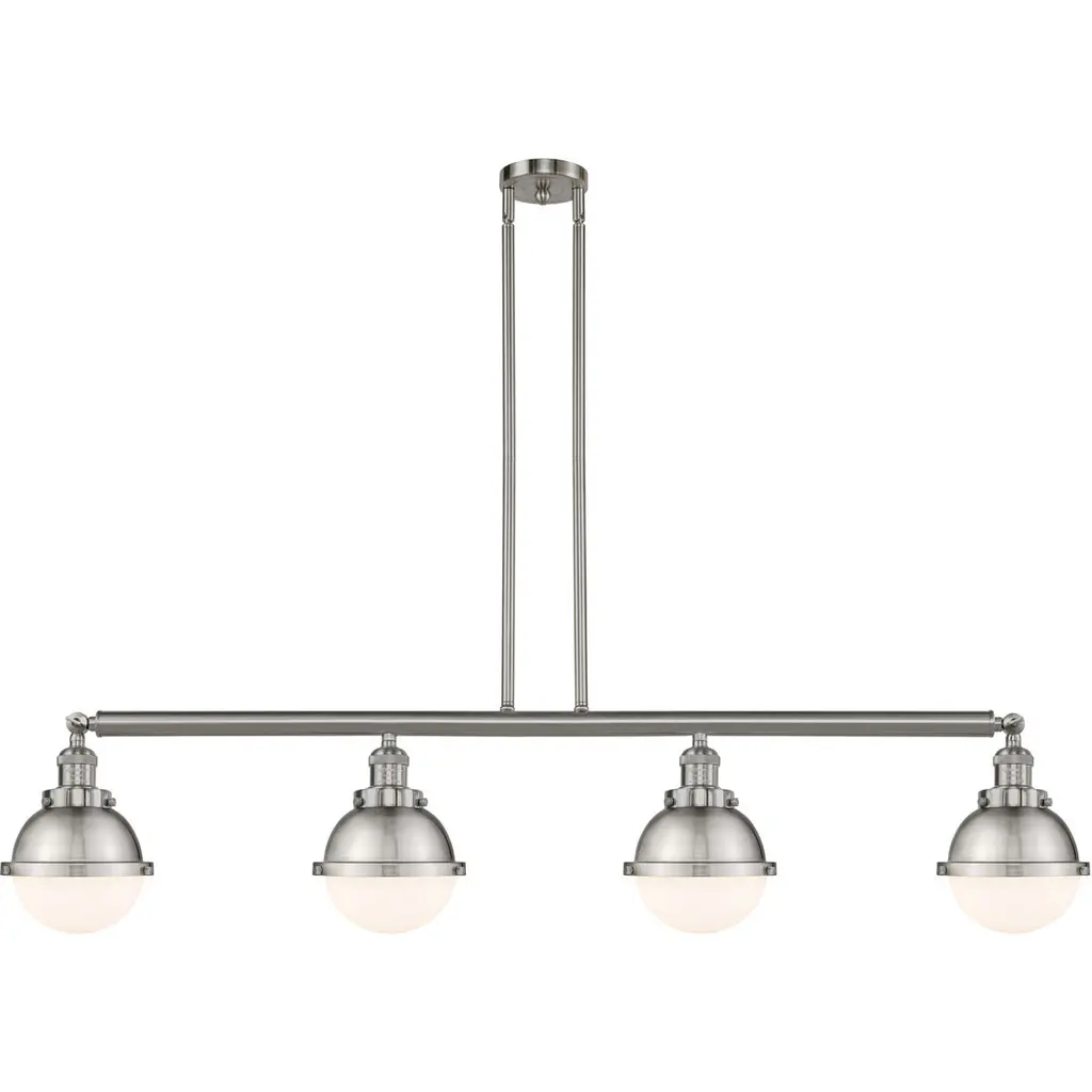 The elegant sheen of the finish and the delicate beauty of its glass shades make this three-light steel billiard light a glamorous addition to any modern home. Suspend this fashionable fixture over a kitchen island, dining table, or pool table to add a balanced aesthetic to interior decor. Room Recommendation: Game Room/Dining Room/Kitchen/Kitchenette Cord Length: 110.00 Chain Length: 72.00 Dimmable: Yes Shade Included: Yes
