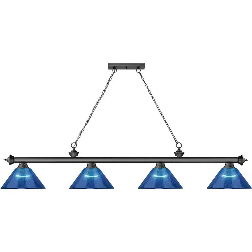 The alluring gleam of the finish and the delicate beauty of its glass shades makes this traditional, four-light metal billiard light an attractive addition to any home. Perfect for kitchens, game rooms, and dining rooms, this effortlessly stylish fixture breathes new life into everyday home decor. Room Recommendation: Game Room/Dining Room/Kitchen/Kitchenette Cord Length: 110.00 Chain Length: 72.00 Dimmable: Yes Shade Included: Yes