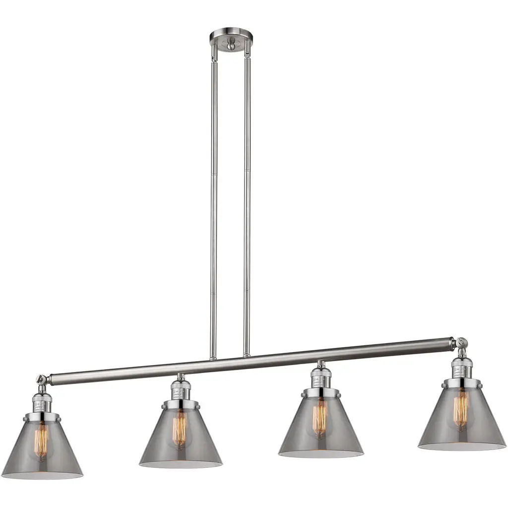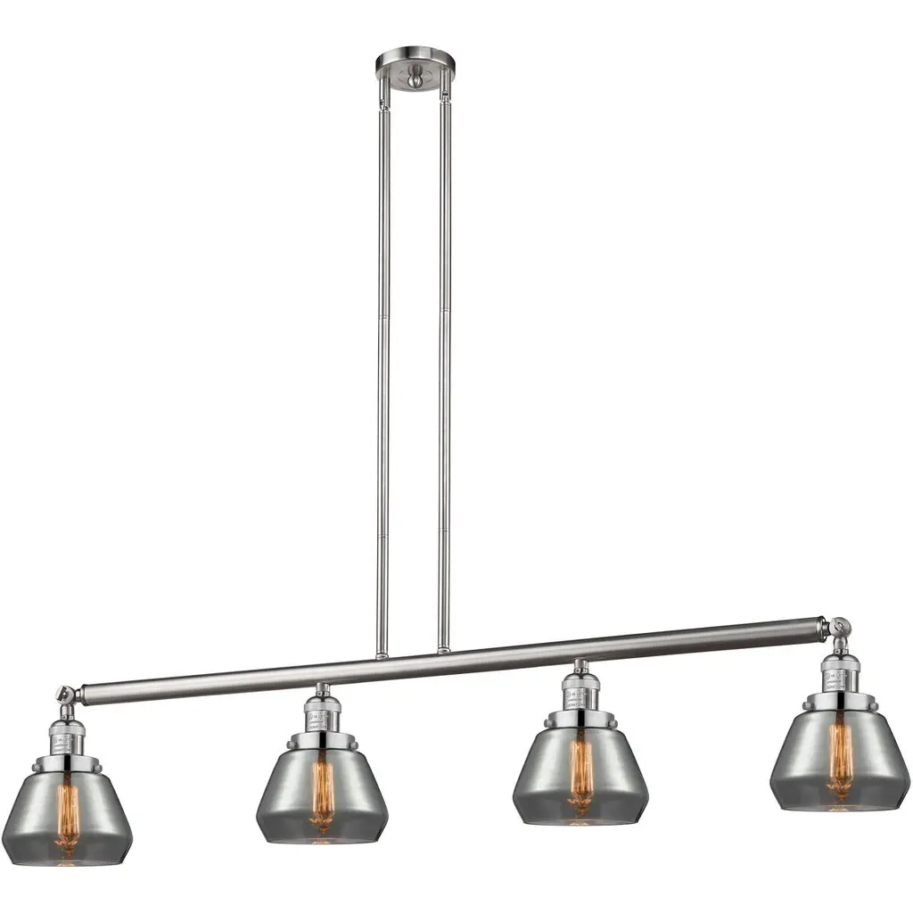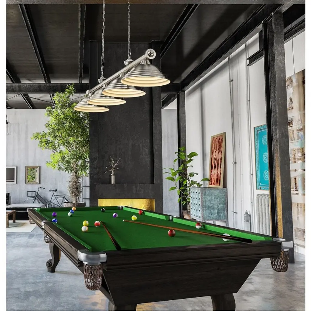 The alluring gleam of the finish and the delicate beauty of its glass shades makes this traditional, four-light metal billiard light an attractive addition to any home. Perfect for kitchens, game rooms, and dining rooms, this effortlessly stylish fixture breathes new life into everyday home decor. Room Recommendation: Game Room/Dining Room/Kitchen/Kitchenette Cord Length: 110.00 Chain Length: 72.00 Dimmable: Yes Shade Included: Yes