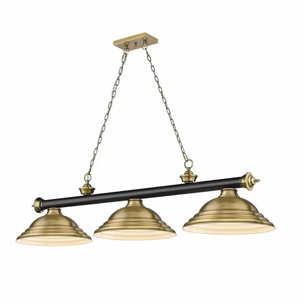 The alluring gleam of the finish and the delicate beauty of its glass shades makes this traditional, four-light metal billiard light an attractive addition to any home. Perfect for kitchens, game rooms, and dining rooms, this effortlessly stylish fixture breathes new life into everyday home decor. Room Recommendation: Game Room/Dining Room/Kitchen/Kitchenette Cord Length: 110.00 Chain Length: 72.00 Dimmable: Yes Shade Included: Yes