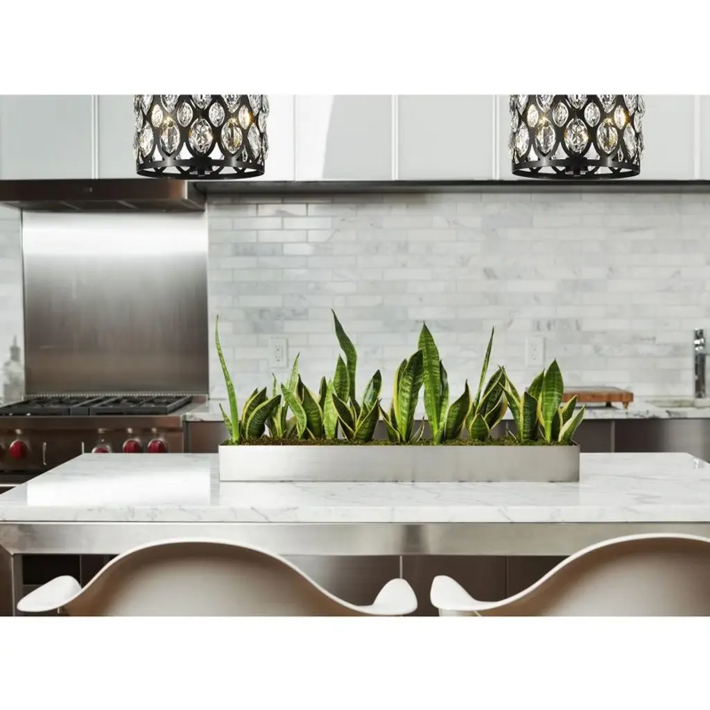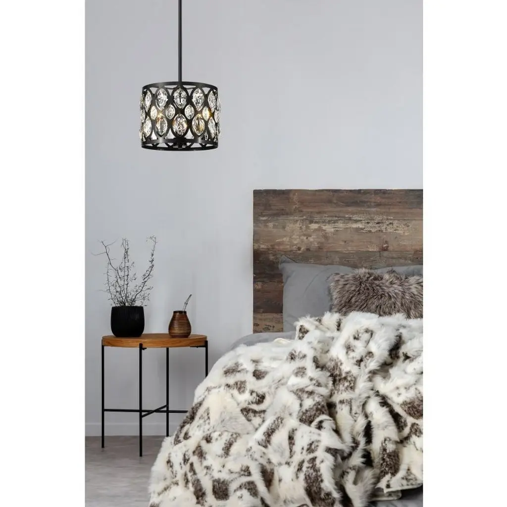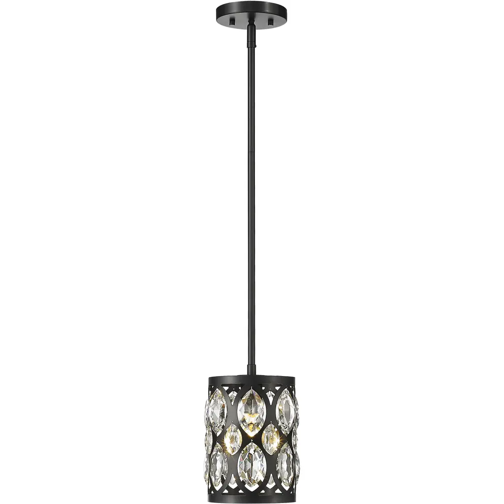 From the Dealey collection comes this elegant and sophisticated three-light chandelier. This chandelier features a matte black steel shade with a striking ellipse punched pattern set with glimmering clear crystal pendants that add a touch of tradition and glamour. Hang this chandelier above a table in a contemporary dining room or in an entryway foyer for a dramatic look. Dining Room/Foyer/Great Room/Hallway/Kitchen No. of Rods: 7 Shade Included: Yes Cord Length: 110.00 Rod Length(s): 12.00 Dimmable: Yes