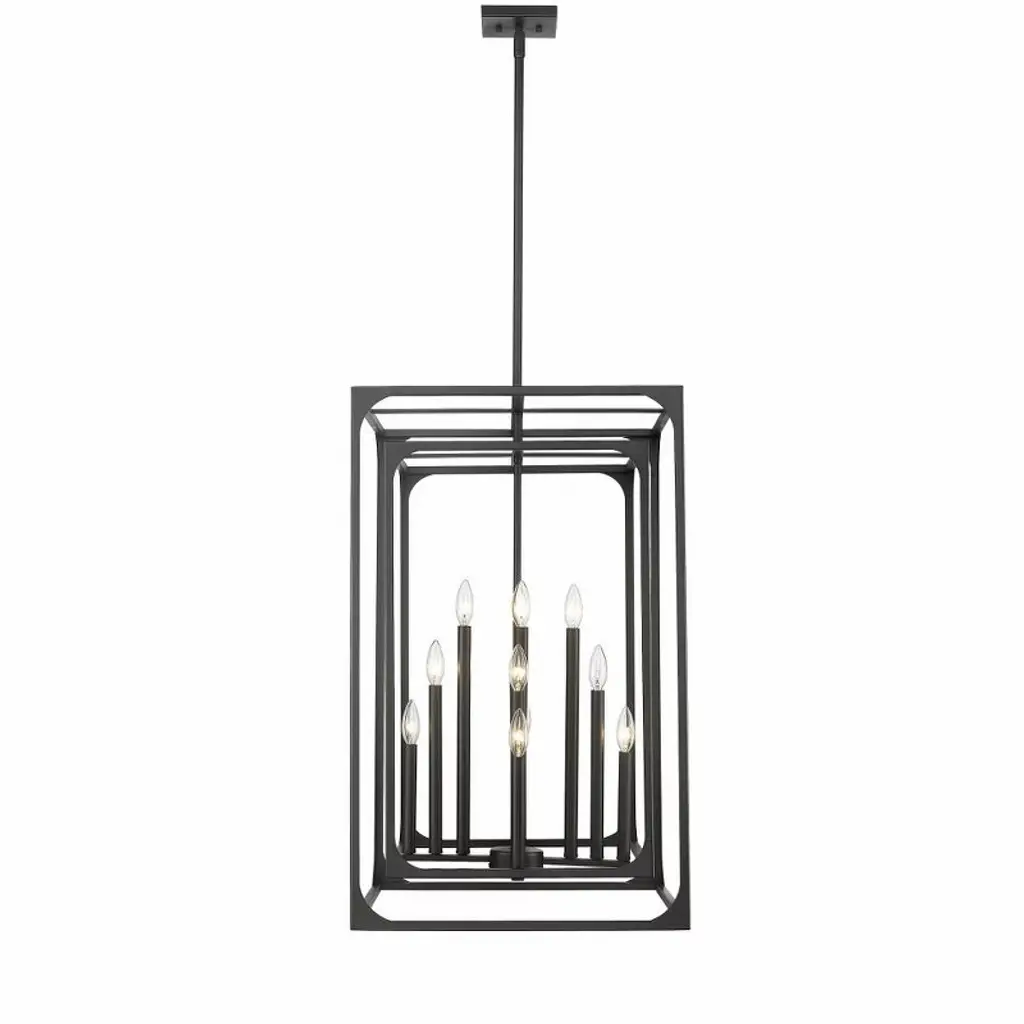 Embrace the striking optical impact of geometry in the design of a light fixture promising bold style perfect for a modern or industrial space. From the Easton collection comes a twelve-light chandelier with linear elements and an orderly aesthetic ideal for trending minimalist décor schemes. Candelabra bulb mounts align in a graduated arrangement, centered in full view thanks to a dual-layered openwork matte black finish metal frame.