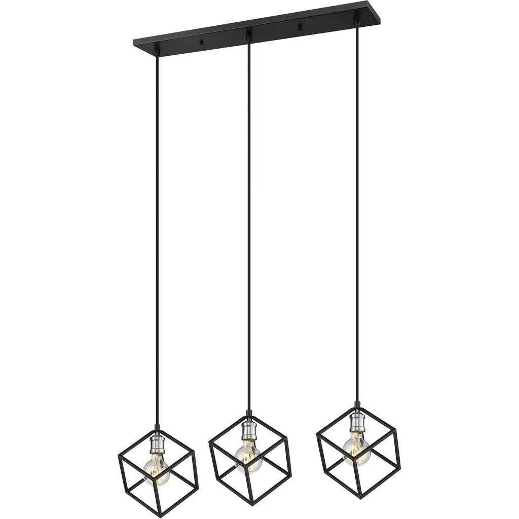 Clean lines and a modern design are showcased in this two-tone three-light pendant for your home. It's fashioned with a bronze and olde brass finish with cube-shaped shades hanging at different heights for an eclectic look that's contemporary yet timeless. It's a design that conveys movement in any dining room, foyer, bedroom, or home office. Bedroom/Dining Room/Dinette/Foyer/Hallway/Kids Room/Kitchen/Kitchenette/Living Room/Office Cord Length: 110.00 Dimmable: Yes