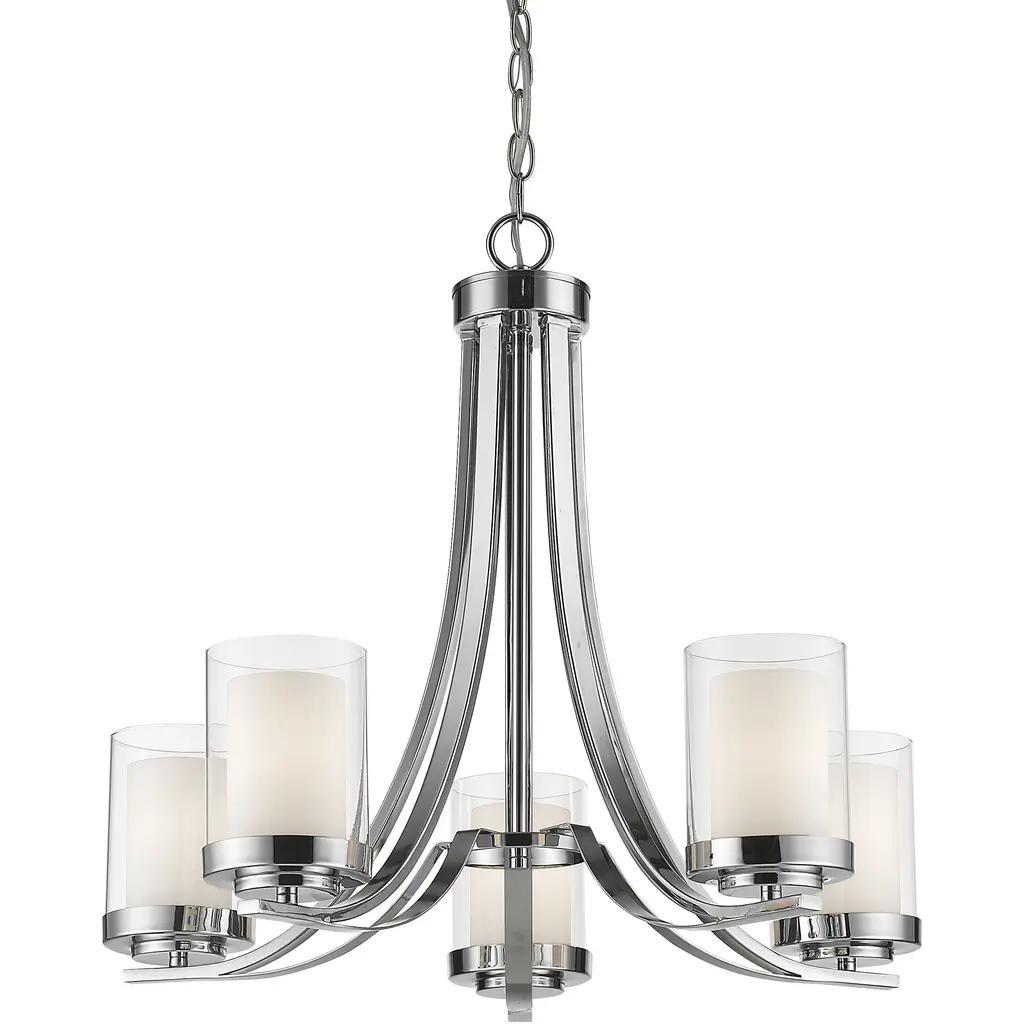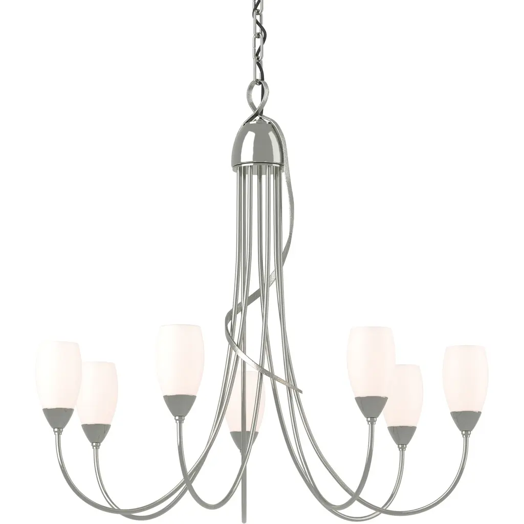 Clean, graceful lines of the arms + glass shades define the Willow family. Chrome fixtures and inner matte opal with clear outer glass shades create clean and unique designs. Dining Room/Foyer/Great Room/Hallway/Kitchen Shade Included: Yes Cord Length: 110.00 Dimmable: Yes Material: Glass, Finish Color: Chrome, Width: 31.25", Height: 29.25", Length: 31.25", Chain Length: 72", Lamping Type: Incandescent, Number Of Bulbs: 9, Wattage: 100 Watts, Dimmable: Yes, Moisture Rating: Dry Rated