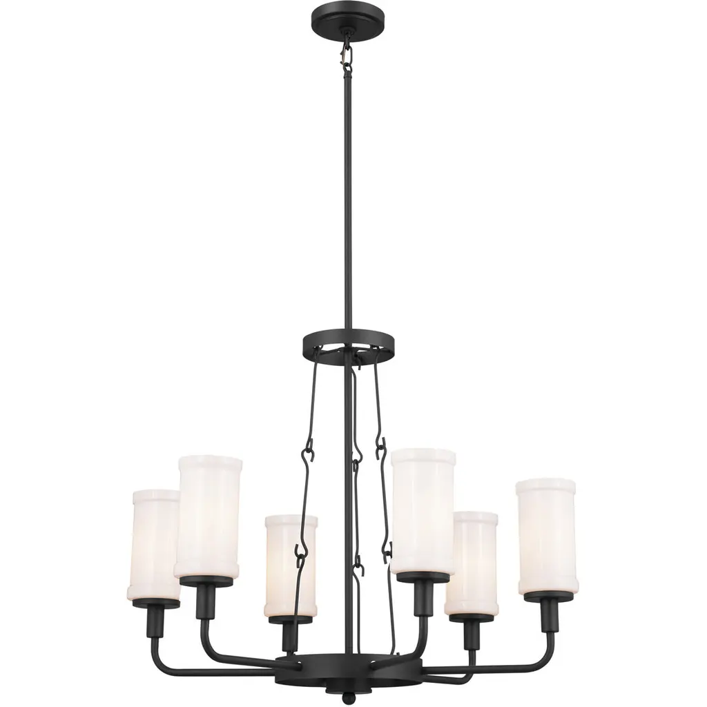 Give your dining room or great room a chic, sophisticated update. This beautiful, matte black chandelier features nine glowing bulbs beneath nine delicate, glass shades that are white on the inside and clear on the outside. An exquisite lighting option to highlight your refined sense of style. Dining Room/Foyer/Great Room/Hallway/Kitchen Shade Included: Yes Cord Length: 110.00 Dimmable: Yes