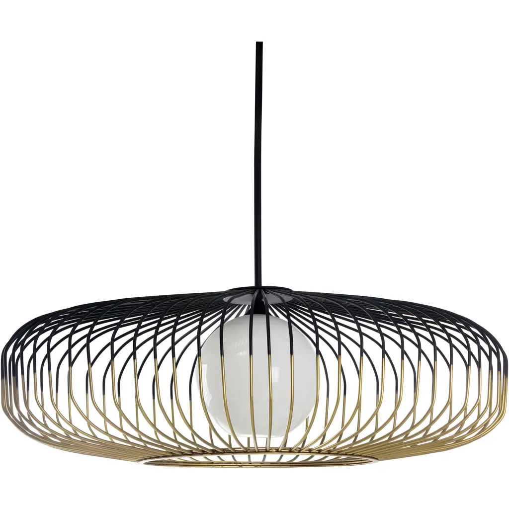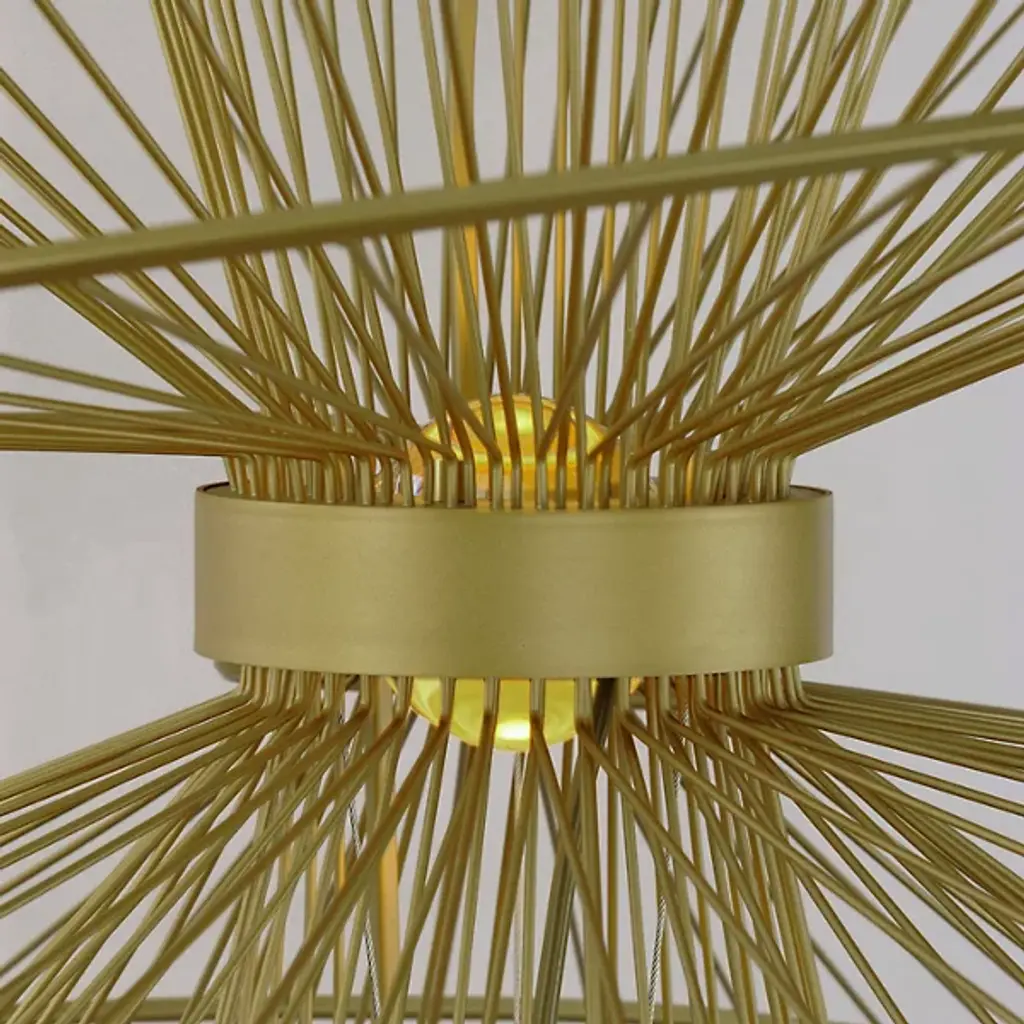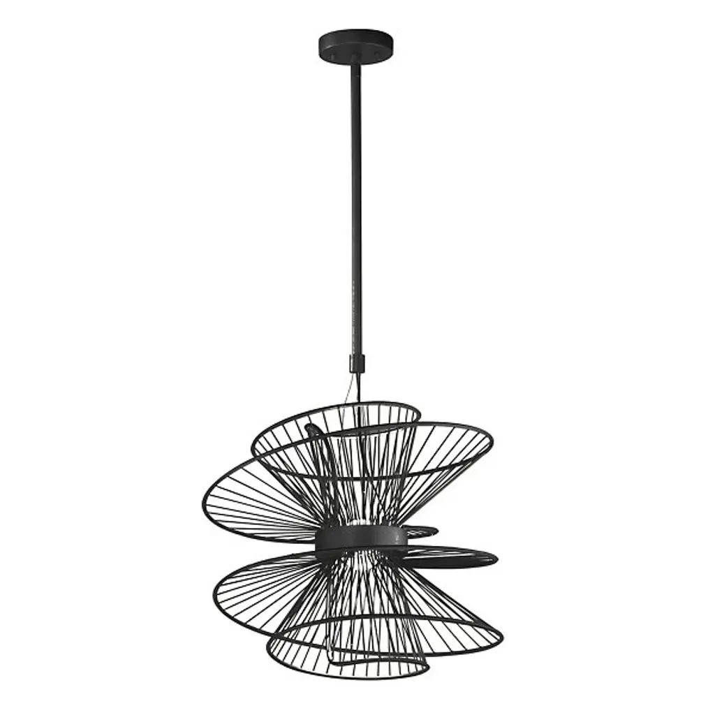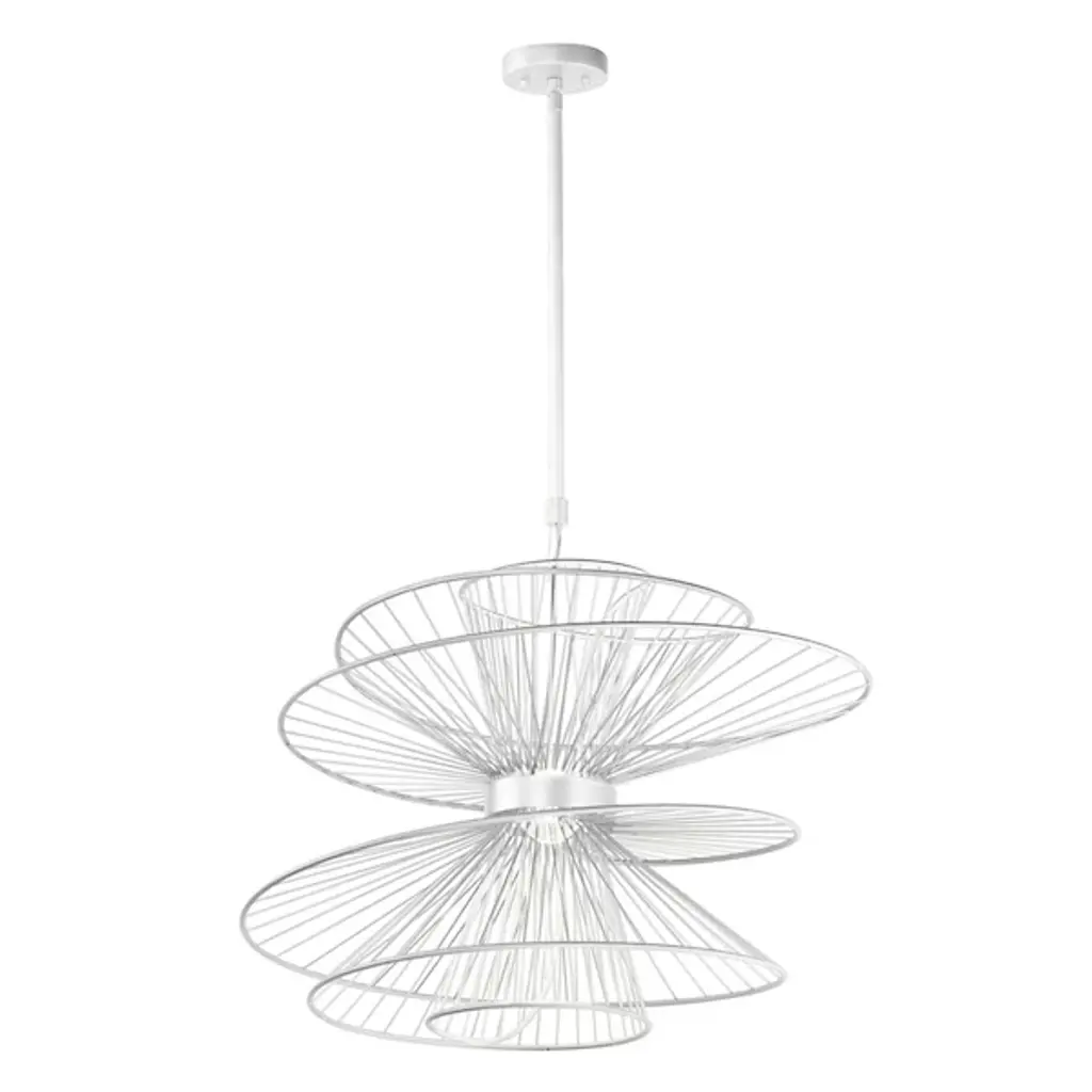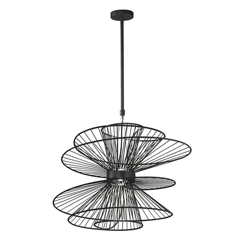 A unique and complex modern piece, the Zeta LED Chandelier from Maxim Lighting brings a new layer of light to the rooms of your home. A single slim downrod lowers it from the ceiling. A hollow ring rests at the center with a crisp orb coming to life from an LED. Surrounding the LED is a series of steel spindles that create an eye-catching silhouette while bringing a dynamic of light and shadow to the walls of your home.