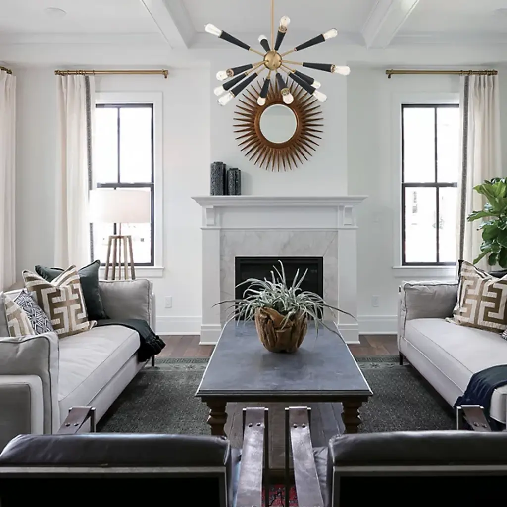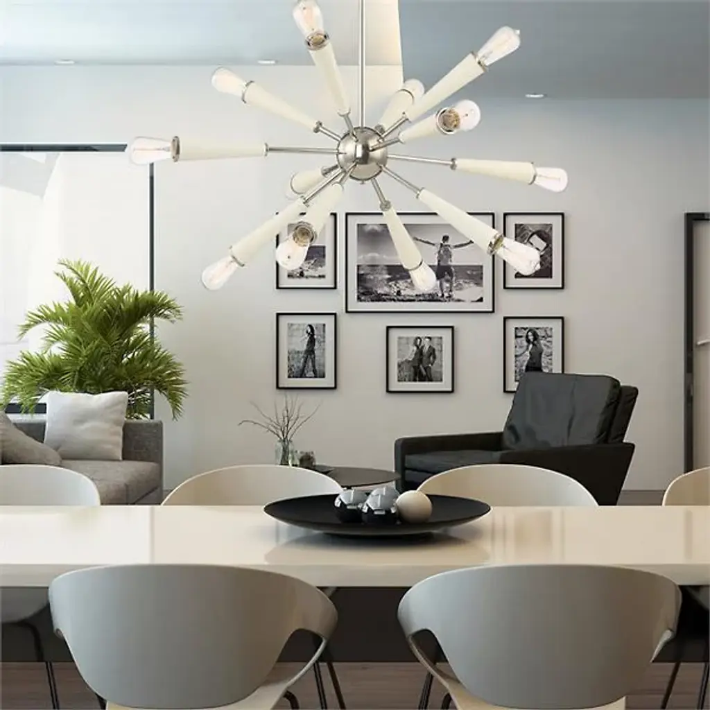 A fortuitous sign of elegant gatherings to come. The Zodiac 12-Light Chandelier by Crystorama is inspired by planets and satellites. Tapered arms projecting from a center orb add futuristic flair to a living space or dining room. With a dozen candelabra lightbulb sockets, it creates a dazzling display when the fixture is lit. The suspension rods allow for easy adjustment of the hanging length when installing this ceiling light over a table or conversation area.