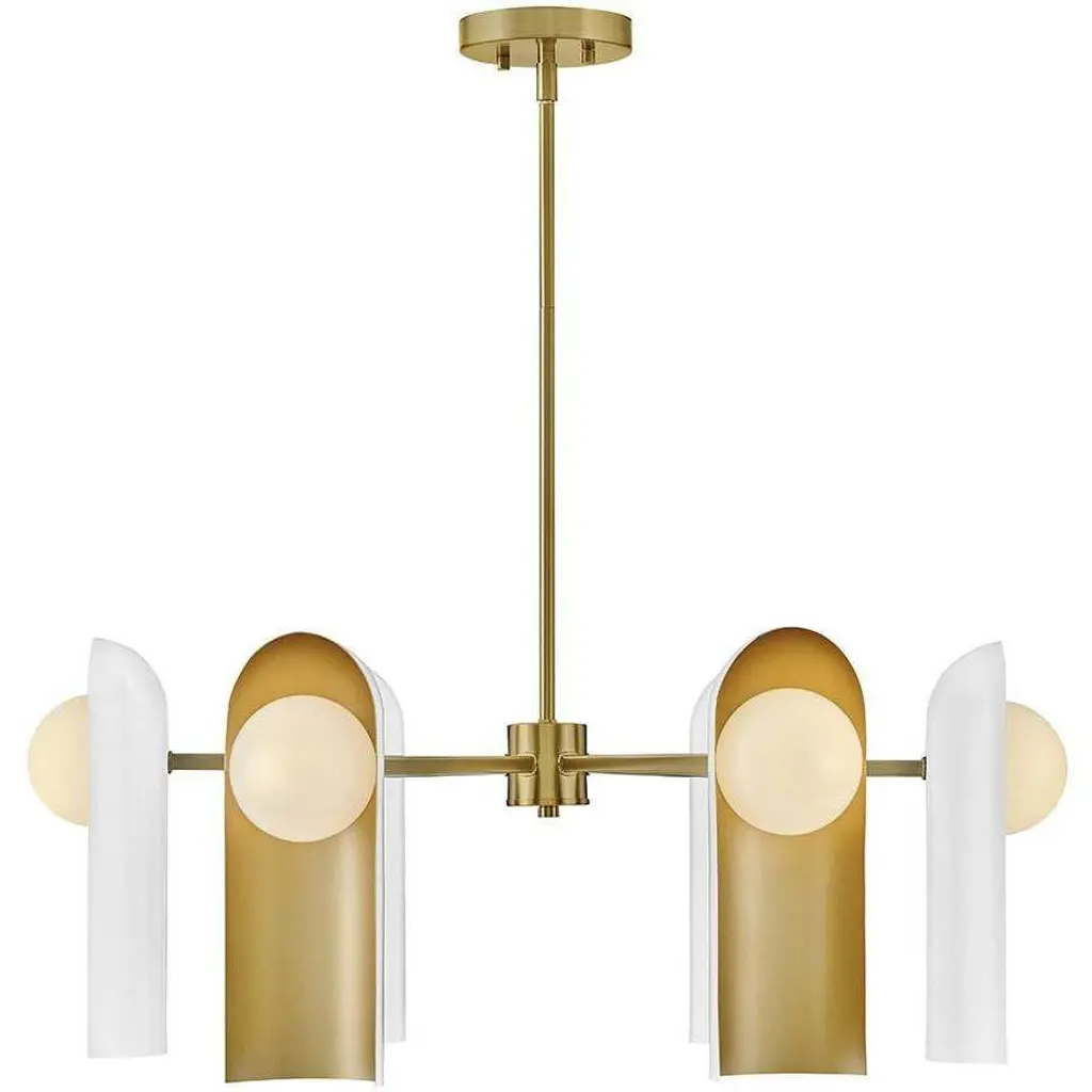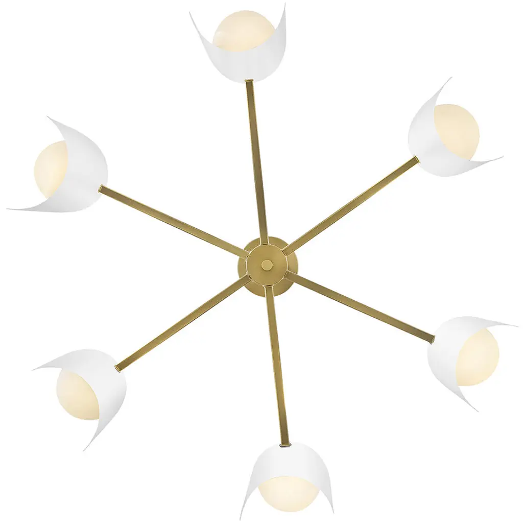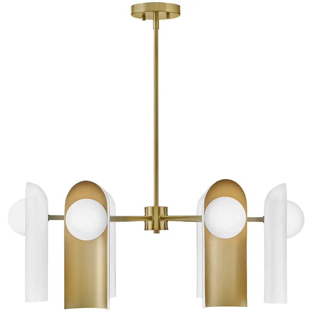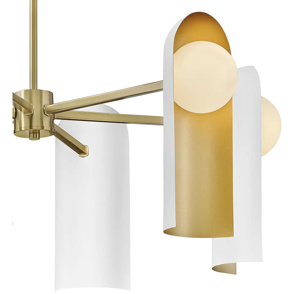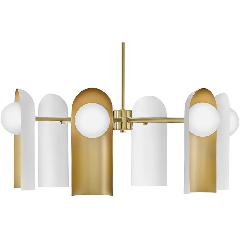 Zuri 6 Light 30 Inch Lacquered Brass With Satin Off-White Chandelier Ceiling Light In Lacquered Brass And Satin Off-White