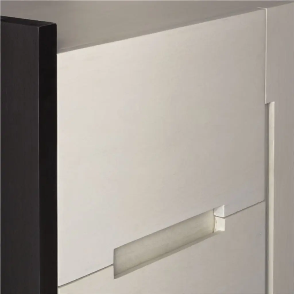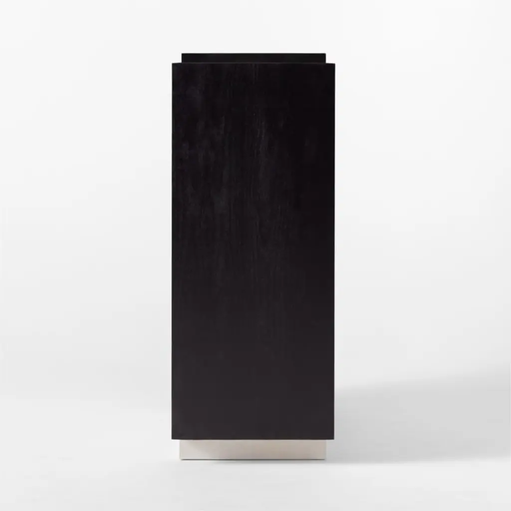 Designer Nicholas Obeid brings a graphic pop to the bedroom with this striking chifferobe. White washed solid acacia wood door and drawers are framed in contrasting blackened mango wood. Four drawers and a removable hanging bar inside the door provide ample storage. CB2 exclusive.