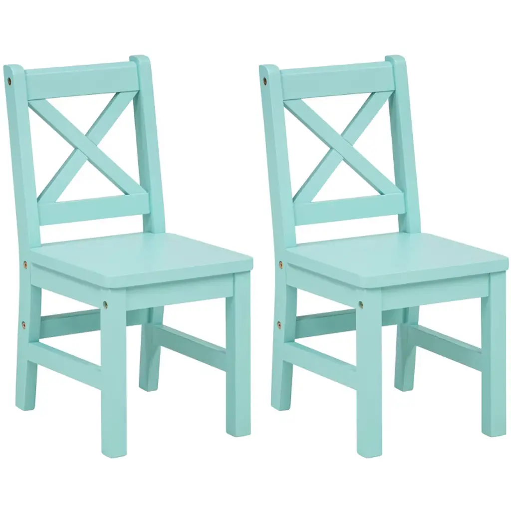 Ehemco Solid Hard Wood X Back Kids Chair, Set Of 2, Sage Green