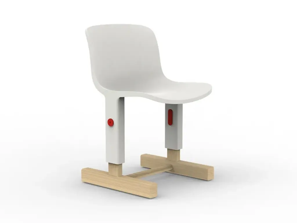 Little BIG chair is for kids from 2 to 6 six years old. In the kindergarten or at home, it is the combination of a light, comfortable plastic shell with sturdy, stable wooden feet. The chair grows with the children, thanks to a simple system that allows the chair to be adjusted to three different heights.As a first chair, it is definitely an object that creates emotional ties – we wanted it to have the qualities of an adult chair, but for children. It comes in three colors and is easy to grab and move around for adults and children.