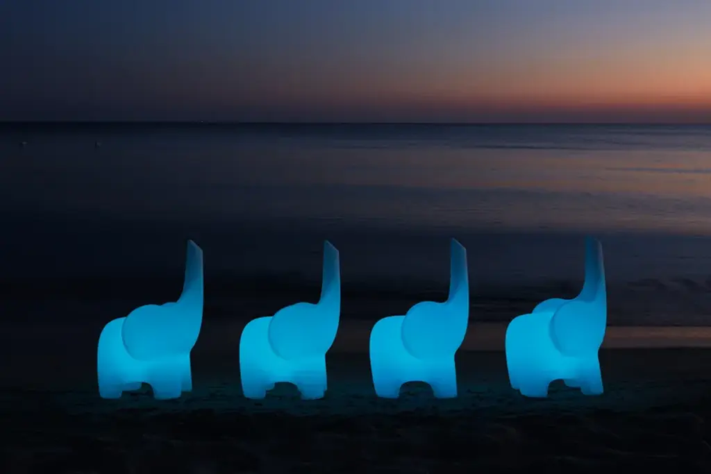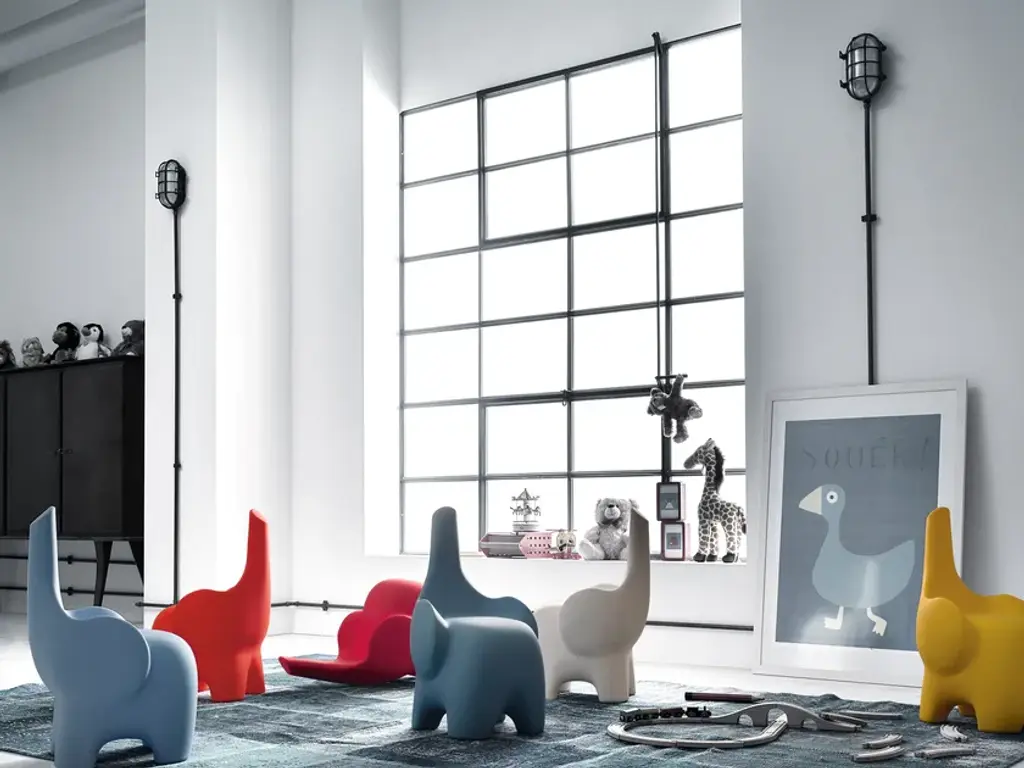 The idea is to create a children’s chair and a toy too.Transactional object that recalls to the little tenderness, strength, courage and beauty. The soft and sweet shape makes it a mascot.Tino’s proboscis is faced up becoming the back of the chairs and refers to the auspicious symbolism of the elephant too