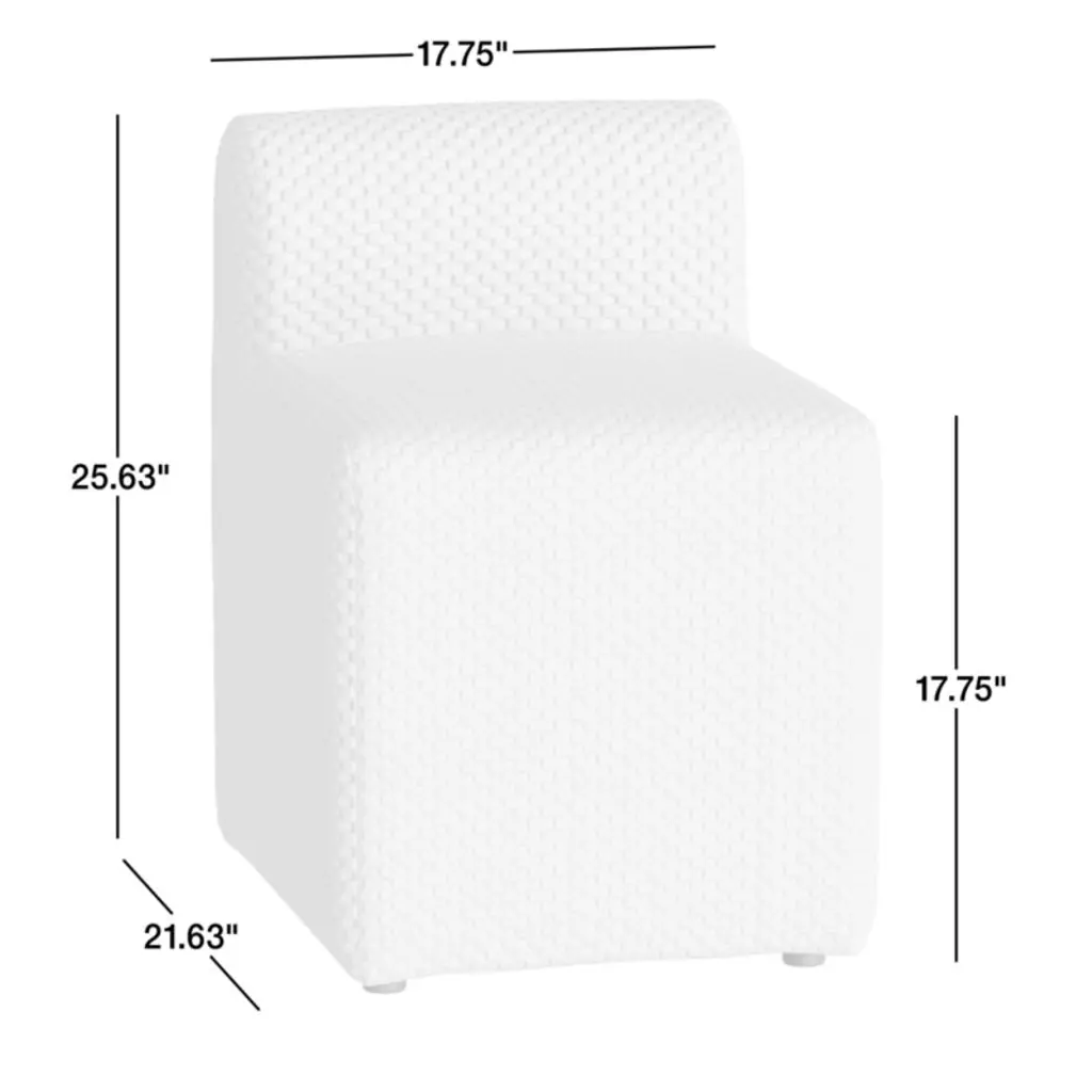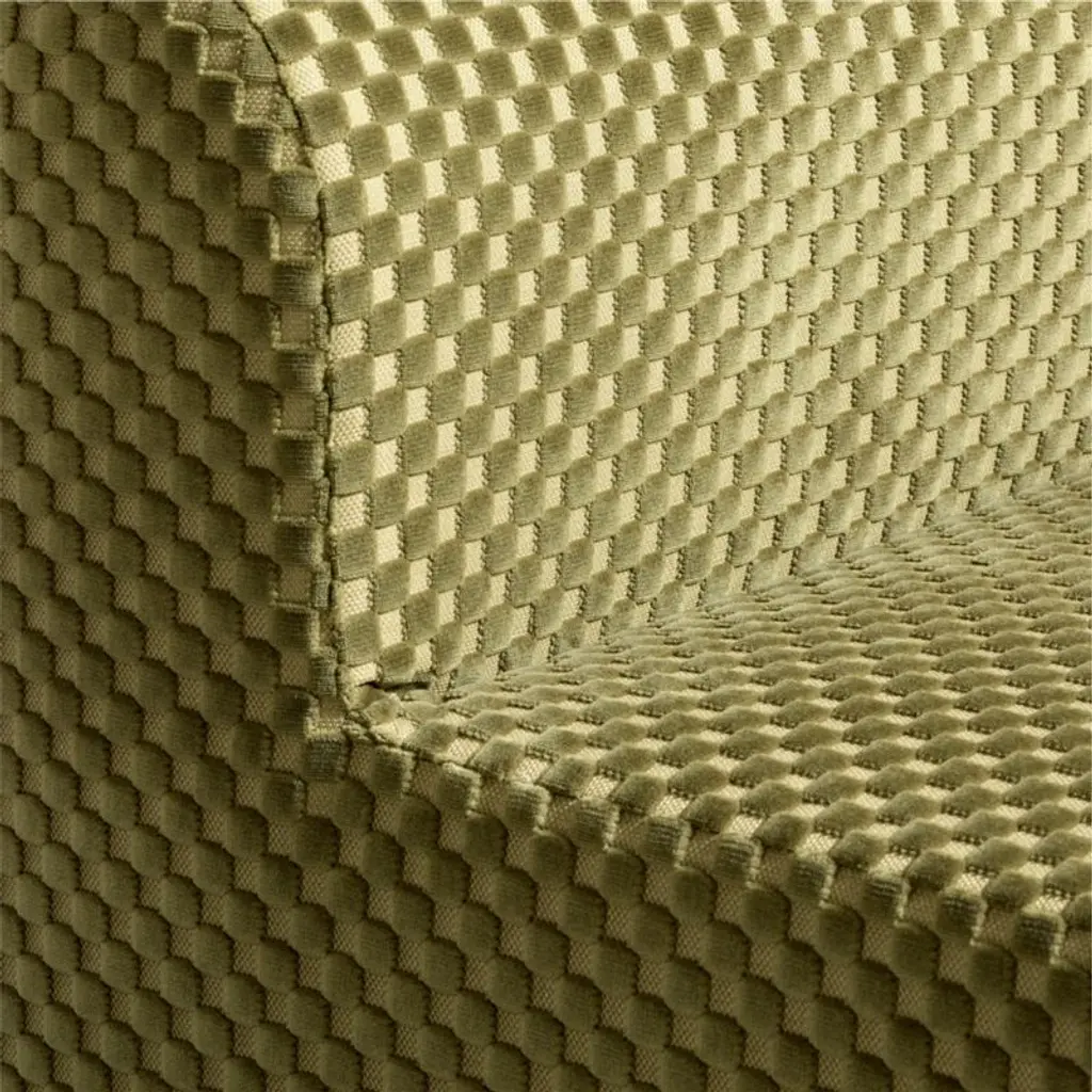 We had some fun reinventing a classic silhouette for kids' spaces. The result? Our Wellie Slipcovered Vanity Chair. First, we shrunk the proportions to create a comfy, supportive seat at a just-right height for kids. Then we upholstered it in a luxe but playfuland thankfully, stain-resistantcheckered velvet. The chair's modern lines and moss green pattern have plenty of personality, but it's also subtle enough to slide gracefully into any room.