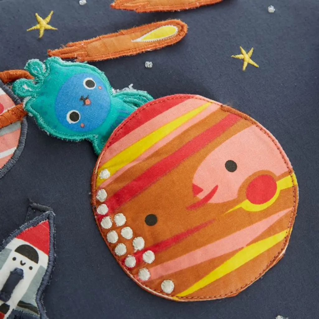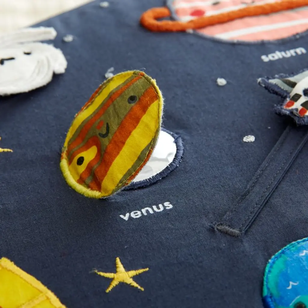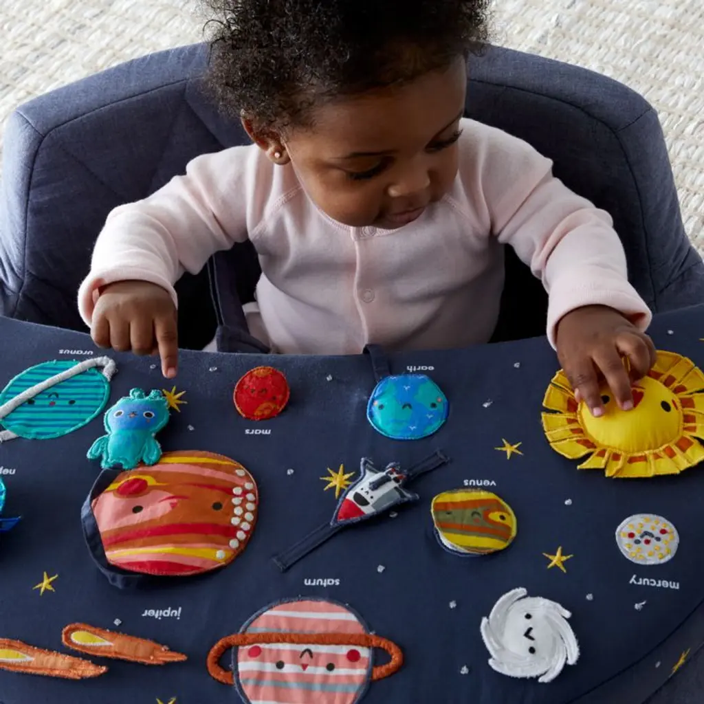 With our Deep Space Baby Activity Chair in your orbit, playtime is always ready for liftoff. The chair's removable tray has plenty to keep curious cadets active and stimulated, from a mirror and rattle to squeakers. A cotton seat makes for comfy voyages through the imaginary cosmos, while the stellar, space-themed designs by Michelle Romo are a real blast.Get ideas for items to add to your baby registry
