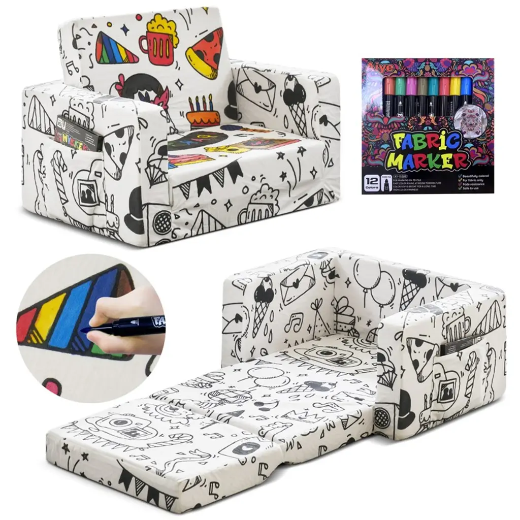 The CoComelon Cozee Flip-Out Chair by Delta Children is a cozy chair by day, laid-back lounger by night. This convertible seat easily flips open to reveal multiple ways for your child to relax--they’ll love to sit and read or watch their favorite movies on the chair but when it’s time for a nap, this seat folds out into a comfy sleeper bed. Plus, when the chair is flipped open it reveals colorful CoComelon artwork. Big enough to fit two small kids comfortably in chair mode, it’s light enough to move around the house and is ideal for your children to share during playtime or sleepovers. The super-soft slipcover with easy-to-reach side pocket is treated with a Scotchgard stain release finish to resist stains, ensuring the chair looks beautiful for years to come! The supportive foam construction will keep its shape and provides all-day comfort. Designed to ship in a super-small box, this lightweight foam kids’ chair and lounger may take up to 48-72 hours to fully expand once unboxed. Machine-washable slipcover zips off for easy cleaning. Recommended for ages 18 months+. About CoComelon: Join JJ, his family and friends in the animated world of CoComelon! Whether at preschool with his friends, at home with YoYo and TomTom, or on adventures with his animal friends, JJ invites kids and parents to watch and sing along together! CoComelon: Where kids can be happy and smart!