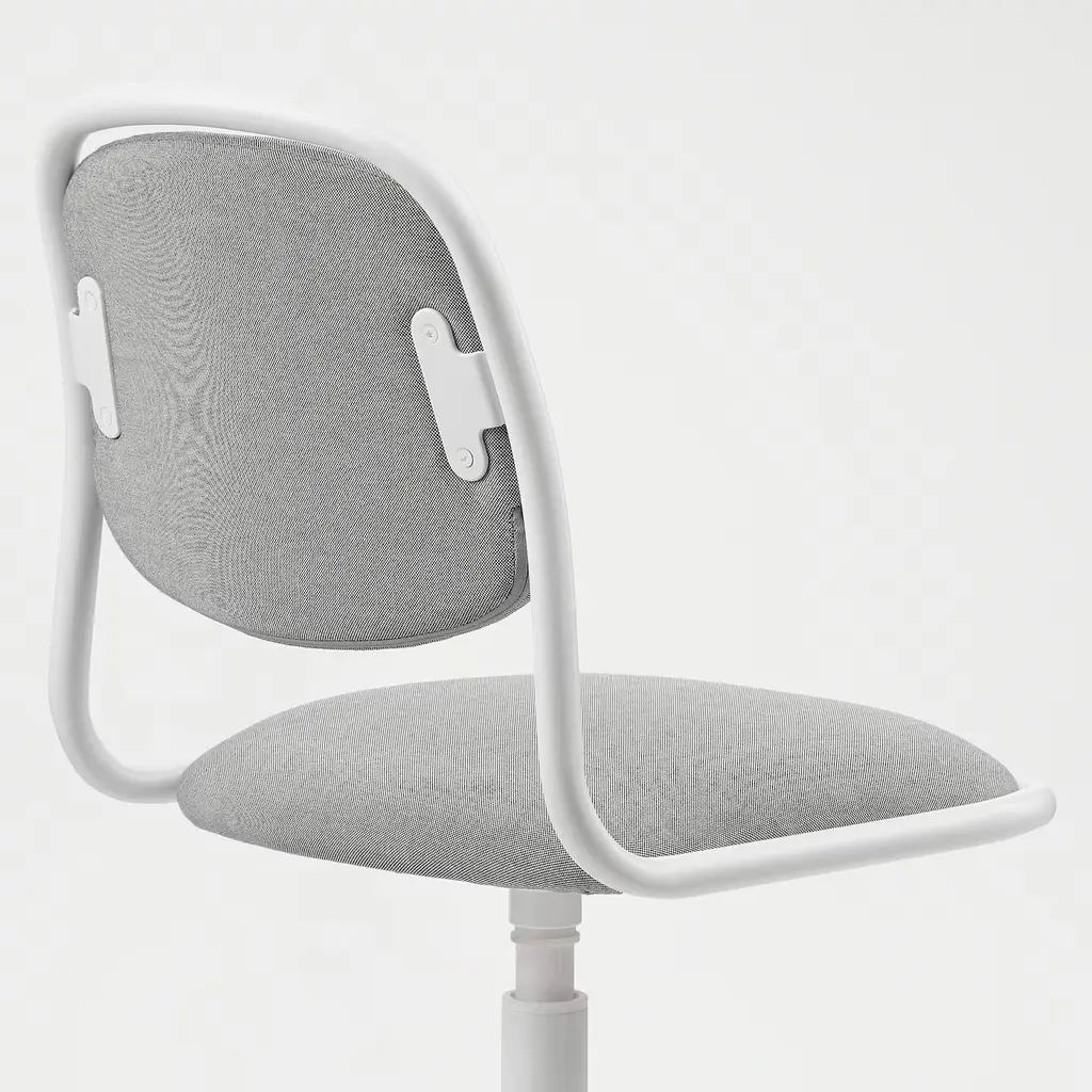 ÖRFJÄLL Child's desk chair - white/Vissle light gray. Height adjustable children's desk chair which you can swivel to the desired height. Simple for the child to change the sitting position by putting their feet on the chair legs, spinning lightly or rolling the castors of the chair.