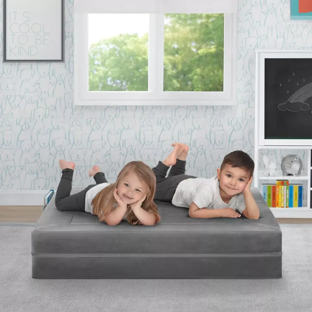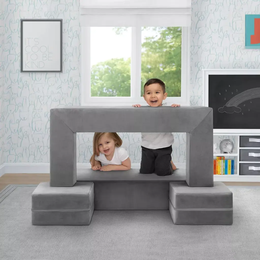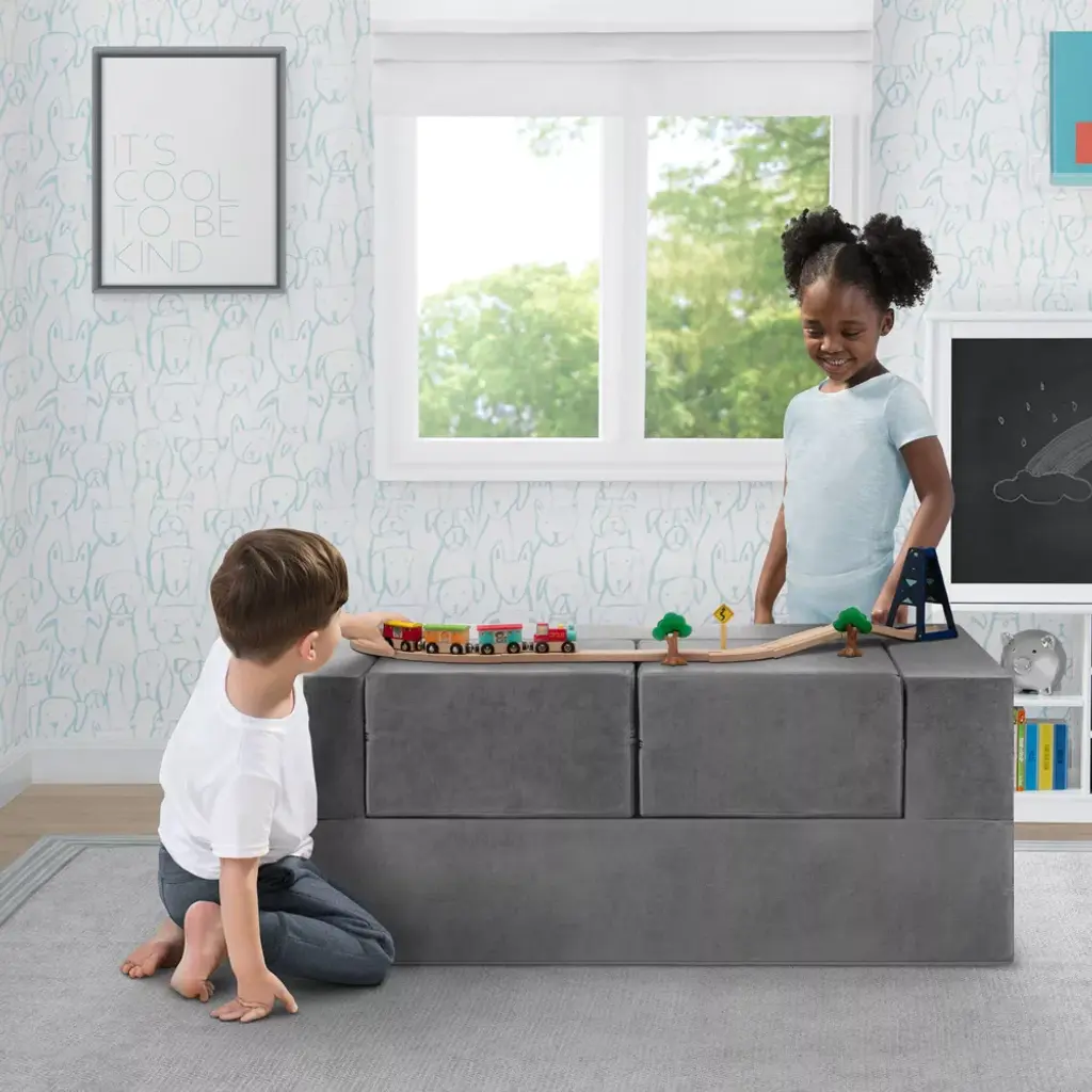 It’s a sofa! It’s a play mat! It’s a fort! The Convertible Foam Sofa and Play Set by Delta Children can be whatever your child imagines. The sofa’s convertible design with two included ottomans allows your little one to use it in so many ways. Use it as a sofa to watch TV, flip it open to use as a play mat or move the parts to configure a puppet theater, castle, ball pit or obstacle course. This modular play couch made up of three foam pieces will give kids hours of entertainment and encourage imaginative play while helping improve gross motor skills. The perfect addition to your child’s bedroom or playroom, the sofa’s sturdy foam base and plush slipcover with a storage pocket is a super-safe play structure. Slipcovers are removable and machine washable. Recommended for ages 18 months and up.Delta Children was founded around the idea of making safe, high-quality children's furniture affordable for all families. They know there's nothing more important than safety when it comes to your child's space. That's why all Delta Children products are built with long-lasting materials to ensure they stand up to years of jumping and playing. Plus, they are rigorously tested to meet or exceed all industry safety standards.