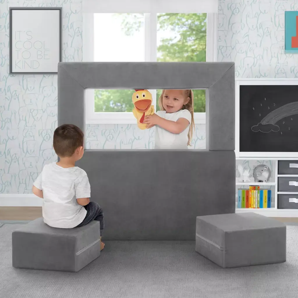 Delta Children Kids' And Toddlers Convertible Sofa And Play Set - Modular Foam Couch And Flip Out Lounger With 2 Ottomans - Gray - 3Ct