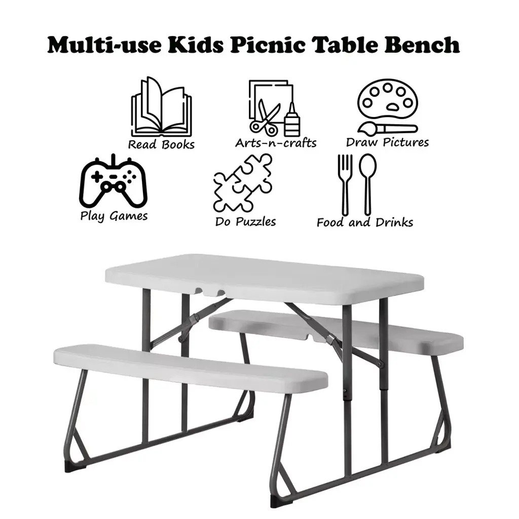 Foldable White Kids' Picnic Table Bench Outdoor Portable Children's Backyard Table, Crafting, Dining, And Playtime Patio Table