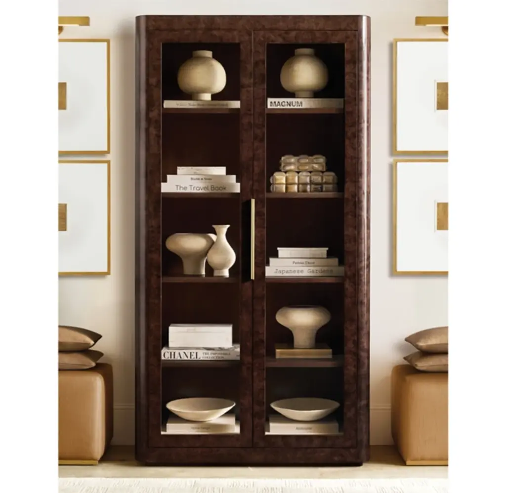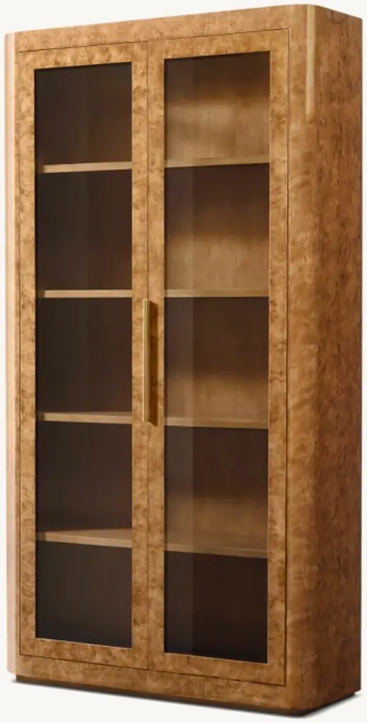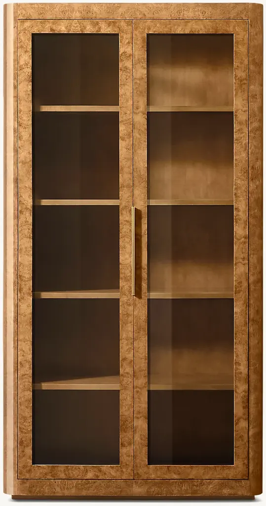 Understated and tailored in its restraint, our collection honors the minimalist geometric forms of 1970s postmodernism and the era's embrace of exotic materials. The clean, gently curved silhouettes are wrapped in burl wood veneers, which highlight the intricate, swirling grain patterns and mottled shading. Expertly cut and pieced by hand, the burl is sanded and buffed to an elegant sheen. Restrained hardware and hidden hinges place the spotlight on expanses of rich woodgrain. SHOP THE ENTIRE COLLECTION
