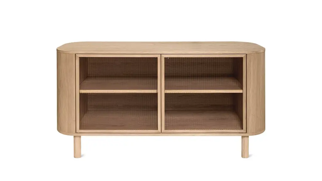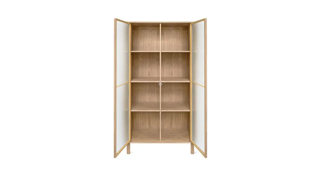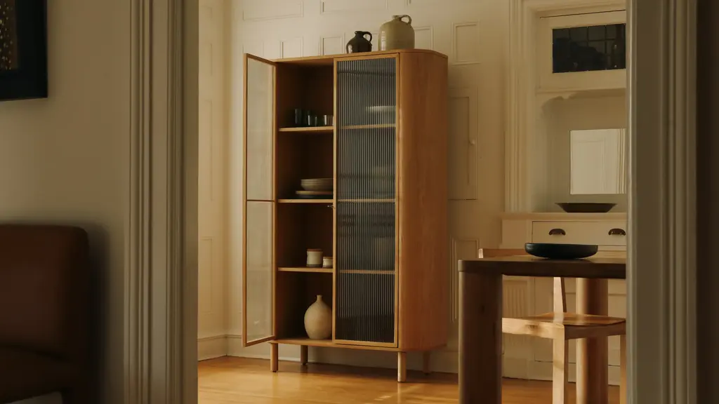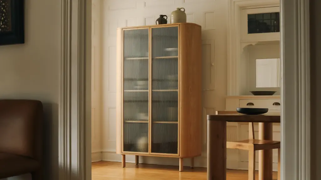 Give a little glimpse. Our Showcase Collection is made with reeded glass doors, making it a worthy spot to store your prized possessions and special items. The subtle fluted texture on the glass and gently rounded frame give this cabinet a family heirloom feel, while the clean hardware-free design makes it contemporary and timeless.