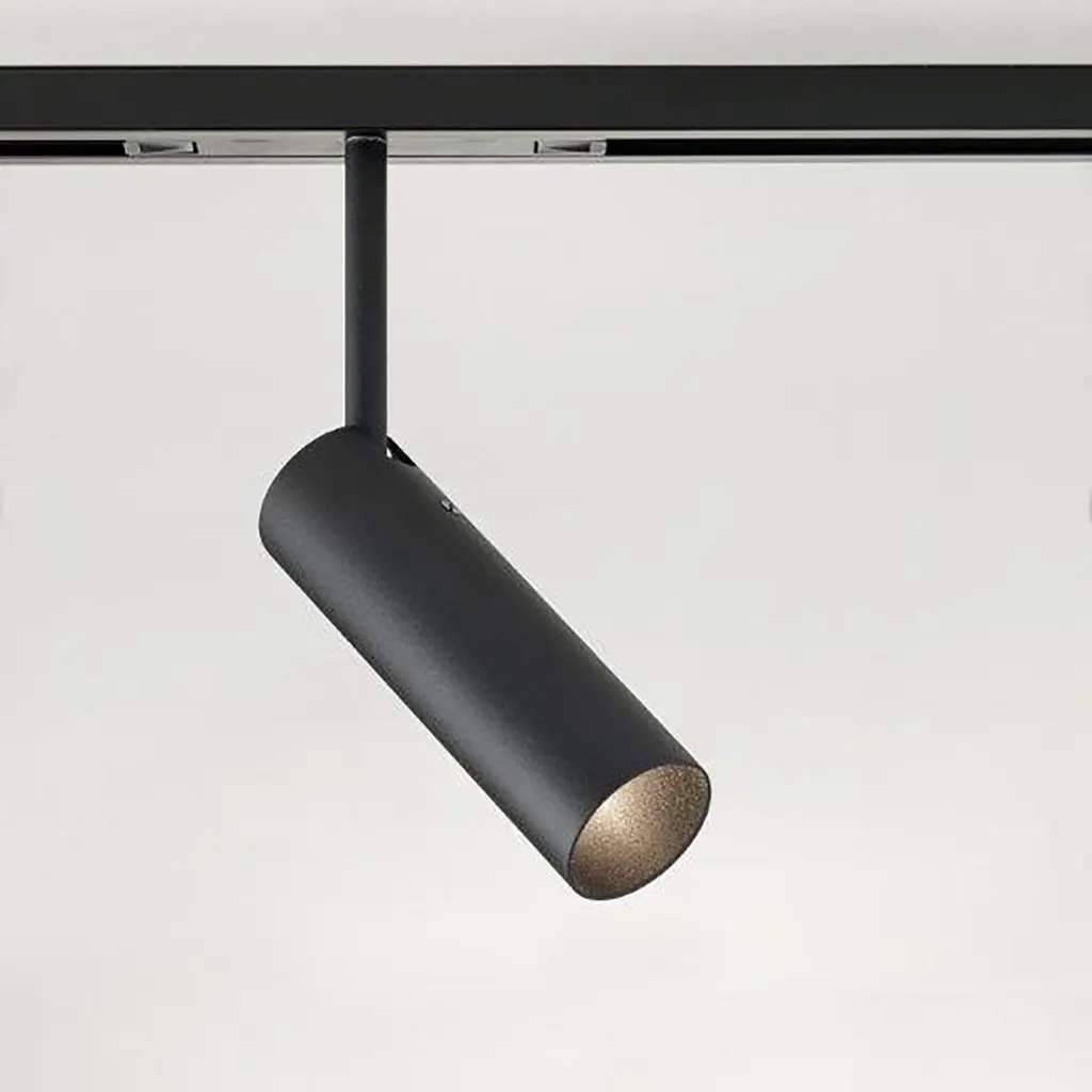 Directional light and adaptor for LED track. Provided with a spot light, axial adjustable from 0° to 90° - directional from 0° to 350°Dimensions: tube Ø 40mm - tube height 130mm. Dimensions LED track: width 30mm - height 15 mm. Use: indoor (IP20)Power supply 48V DC.Energy class A Integrated driver DALI dimming