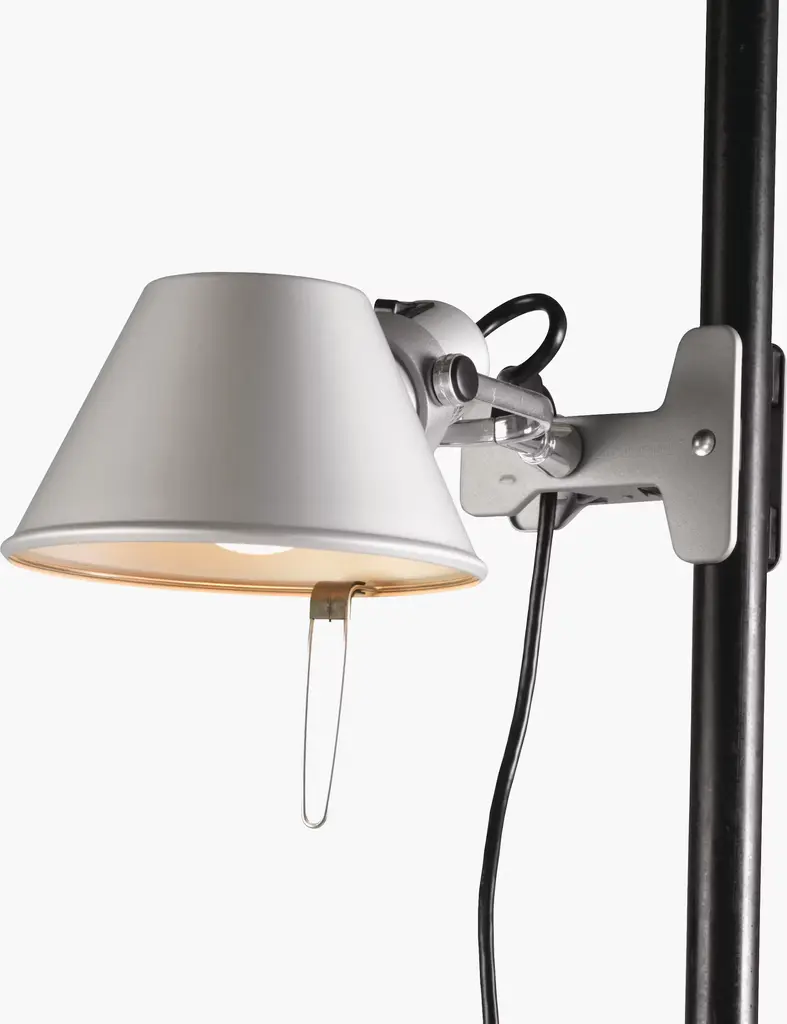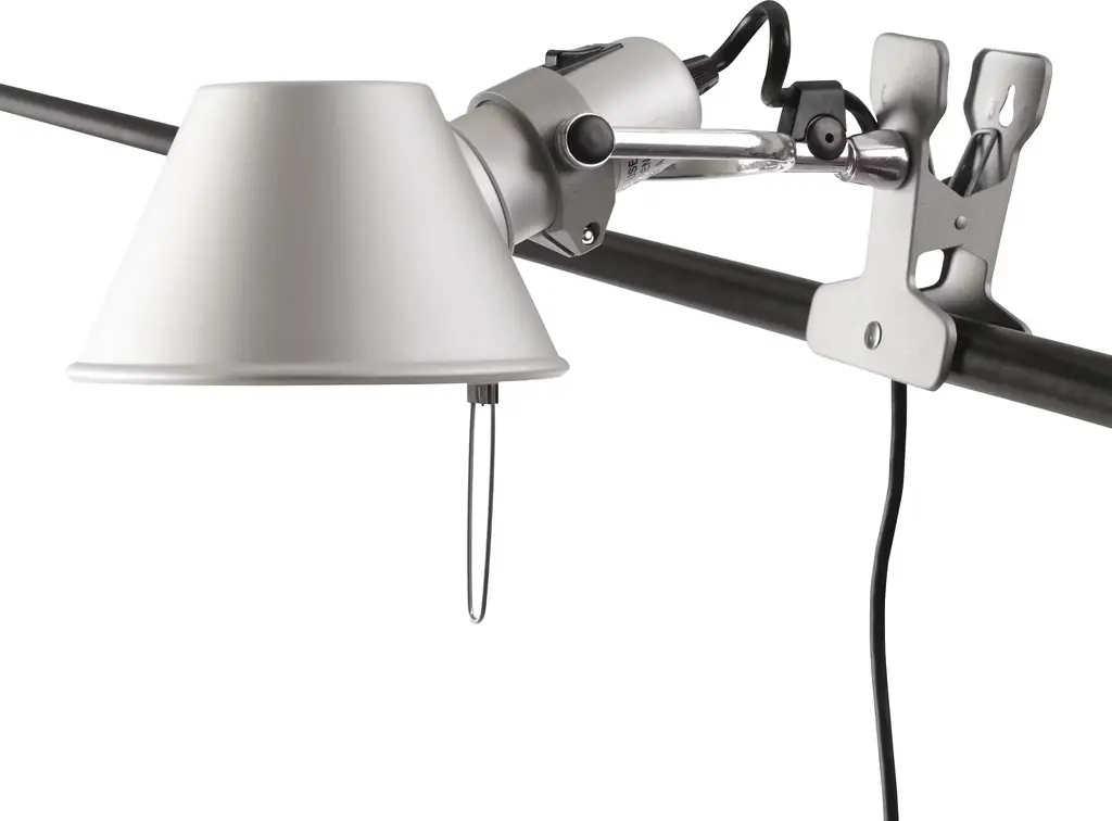 Rather than develop his career within a single design discipline - be it industrial, furniture, interior, lighting or architectural design - Michele De Lucchi chose to move freely among them all, creating door pulls for Valli Colombo, laptops for Olivetti and tape dispensers for Pelikan while designing banks in Germany and apartment buildings in Japan. His Tolomeo Lamp (1987), designed in collaboration with Artemide's R&D department head Giancarlo Fassina, was honored with the Compasso d'Oro Award in 1989, earning worldwide recognition for its perfect marriage of design and engineering. Since then, the Tolomeo Collection has grown to include an assortment of sizes and styles. Able to be positioned anywhere indirect or direct lighting is needed, the Clip Spot is suitable for shelf, pipe or table mounting. The on-off switch is incorporated in the lamp holder, and the aluminum diffuser swivels 360 degrees. Bulb (not included): incandescent 100W/E26/A19. UL Listed. Made in Hungary.