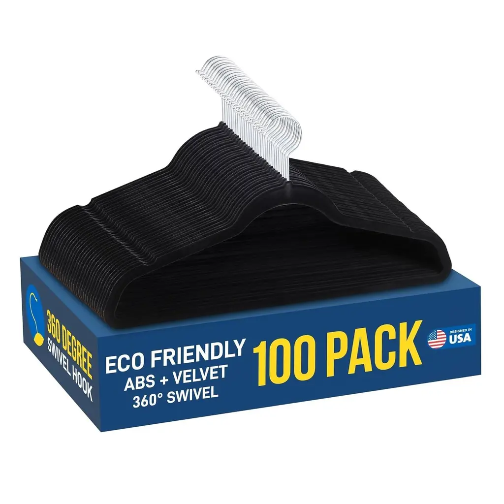 Durable Non-Slip Clothes Hangers Sturdy Plastic Set - 100 Pieces - Black