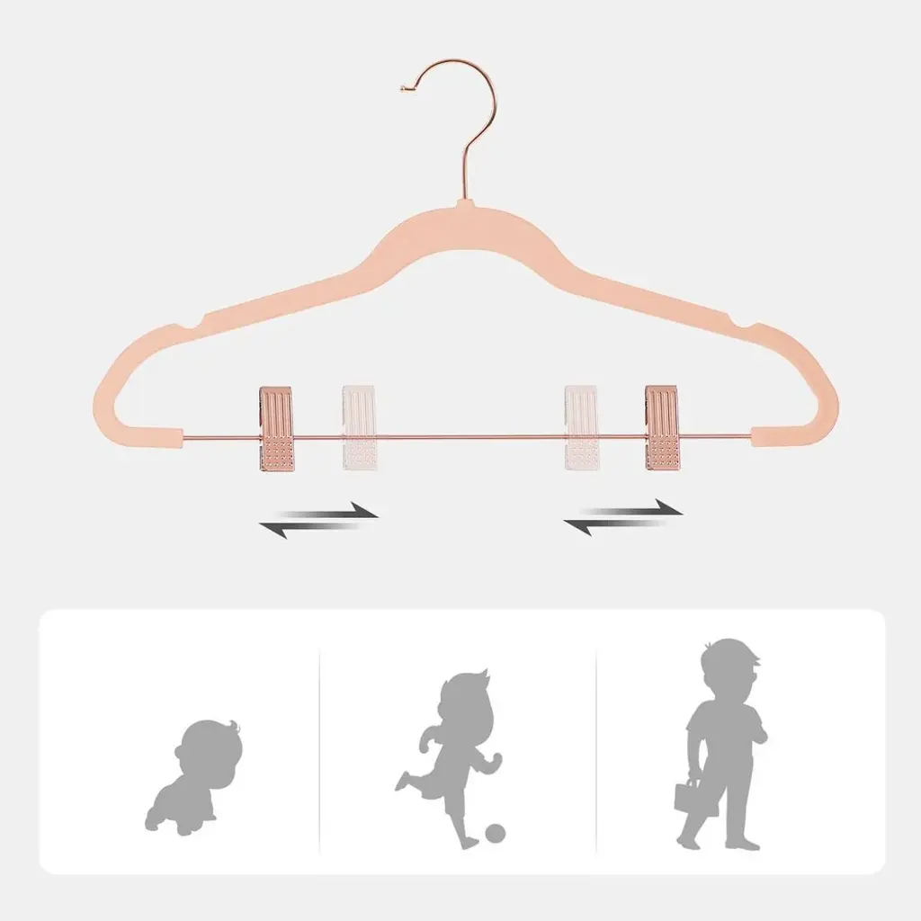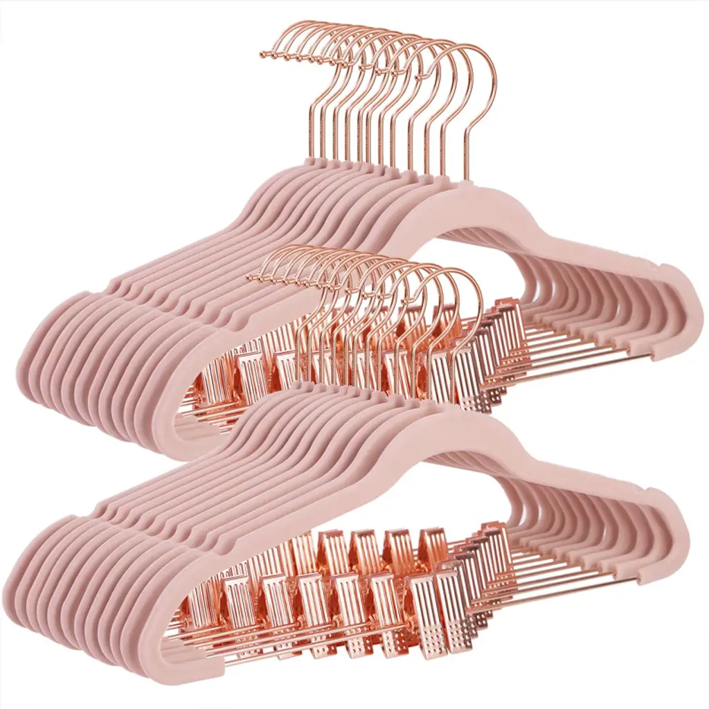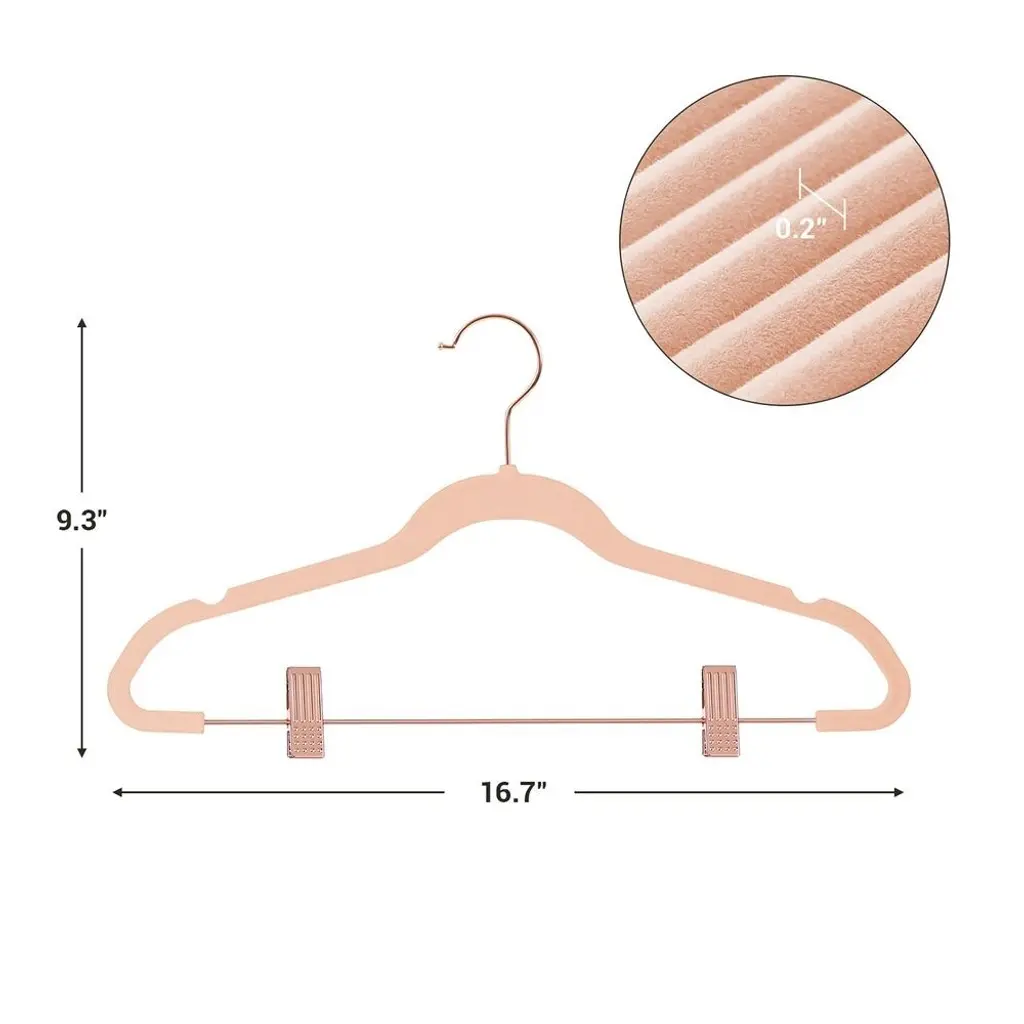 Light Pink Plastic Space Saving Clothes Hangers With Rose Gold Movable Clips - 16.7"l X 0.2"w X 9.3"h - Rose-Gold-Light-Pink